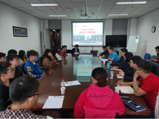 (通讯员 黄彩红 同榛)按照教育部党组和学校党委相关要求,为落实立德树人根本任务,要深入基层联系学生。为充分了解学院2017级本科生思想动态及学习生活情况,5月28日下午,计算机科学与技术学院在南校区G514会议室召开了2017级本科生座谈会,学院党委副书记张莹莹、2017级本科生班主任及辅导员和45名学生代表参加了会议,会议由学院党委书记李青山主持。