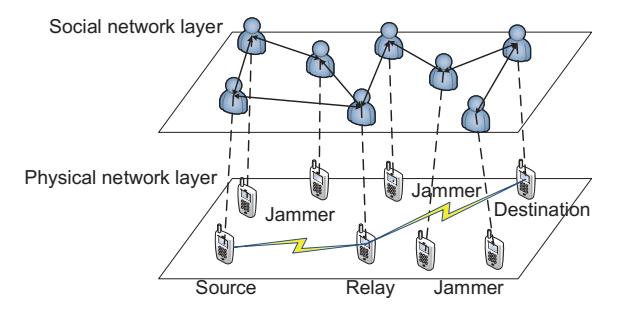 图3. 基于社交网络的两跳无线通信模型