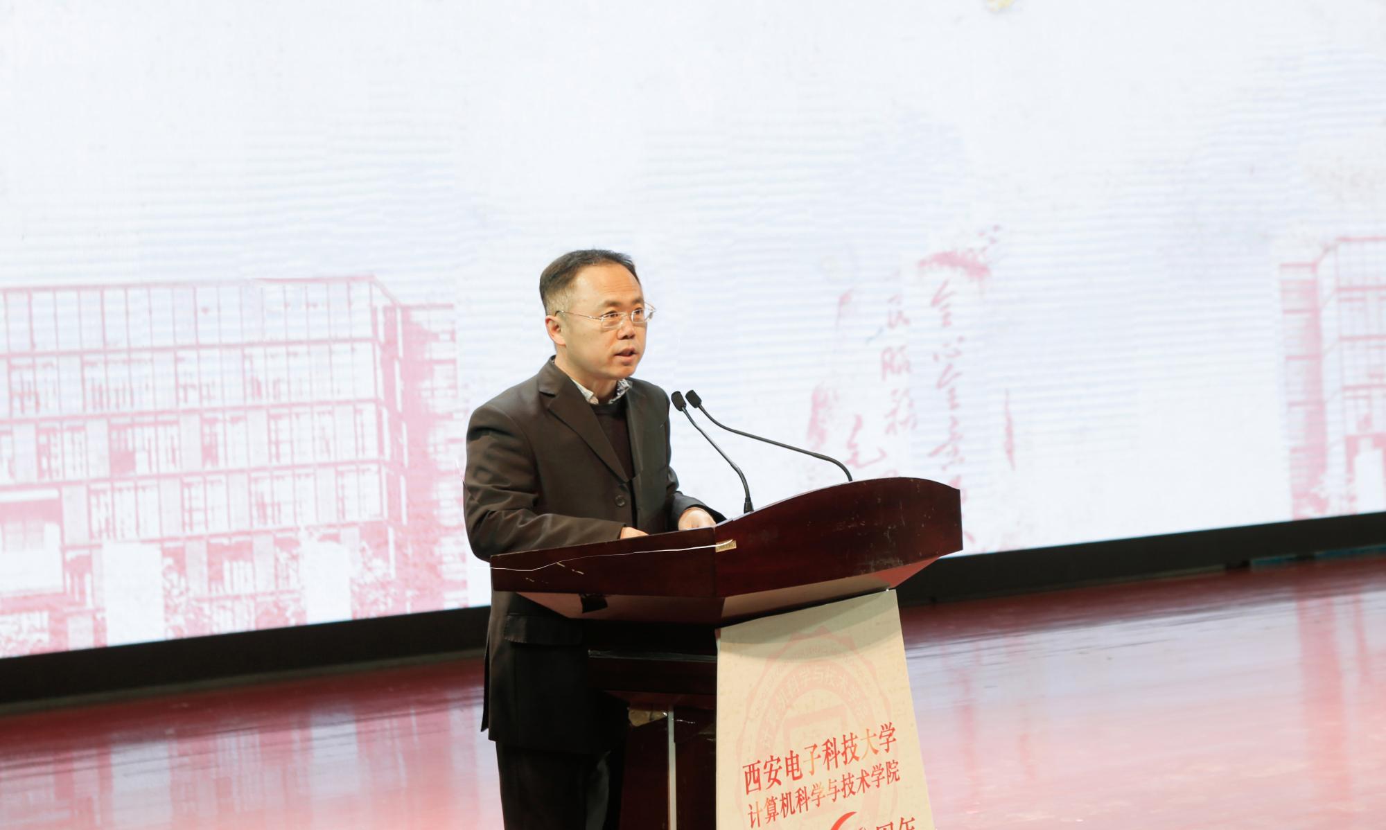 计算机科学与技术学院执行院长崔江涛在发言中回顾了学院的建立过程及60年来在学科建设、师资队伍、科学研究、人才培养、国际交流等方面取得的突出成果,并对长期以来关心帮助学院发展的各界领导、专家、院友及校友表达真诚的谢意。他希望各兄弟单位、各位校友能够继续关注和支持西电计算机学科发展,在人才培养、科学研究、学科建设等各个方面加强合作交流,推进教育现代化,助力教育强国战略。新时代呼唤新使命,新使命决定新作为,西电计算机人将坚持立德树人为根本任务,不忘初心,牢记使命,发扬传统,开拓创新,为我国计算机事业的发展做出更大的贡献。