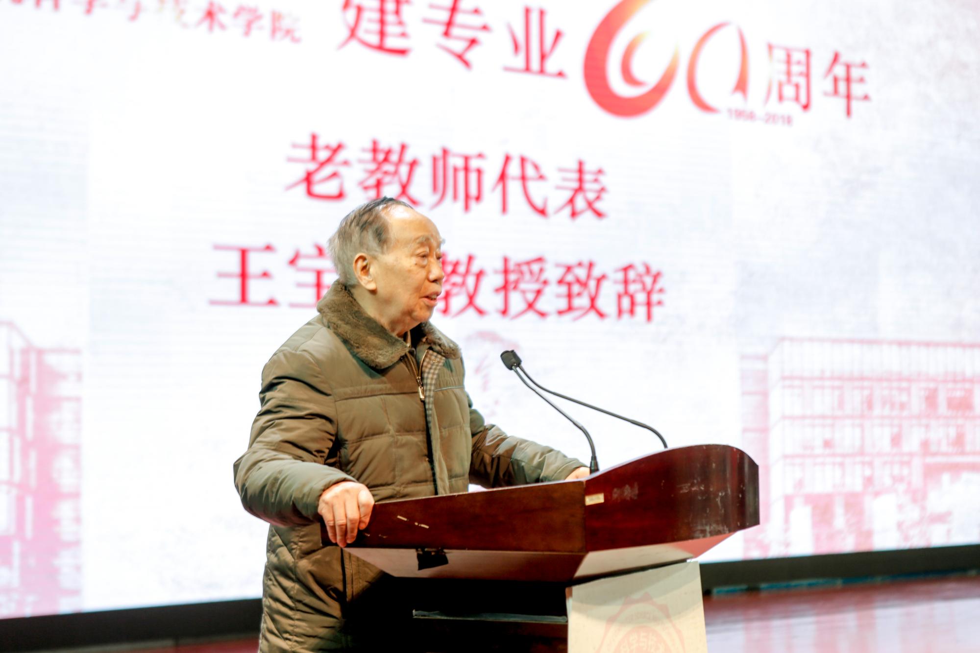 学院老教师代表王宝树在讲话中表示,作为三系(计算机科学与技术学院前身)第一届毕业又留校工作的老师,看到计算机科学与技术学院的每一点进步都感到无比自豪。60年来,学院为国家和社会输送了大批优秀人才,遍及海内外的校友在各自不同领域施展才华、建功立业,不仅为国家和社会做出了重要贡献,更为西电赢得了良好的社会声誉。学院在师资队伍和学科建设等方面,也都取得了显著成绩,希望全院师生能发扬艰苦奋斗的优良作风,时刻牢记西电精神,立自强之志,迈坚实脚步,努力成为新时代的西电人。