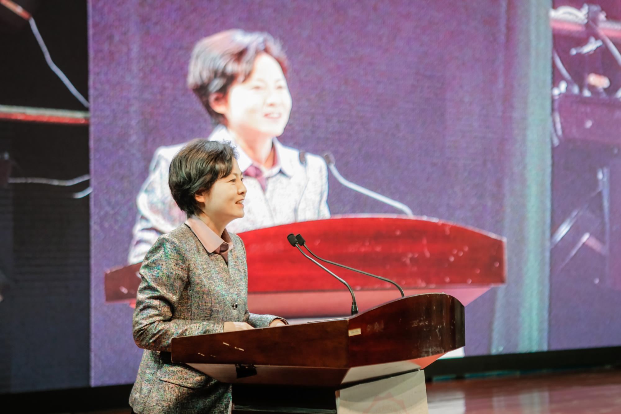 院友代表中国电子学会副理事长兼秘书长徐晓兰在讲话中表示,中国电子学会一直与学院有着广泛的联系,学校、学院的许多项目都曾获得电子学会奖项。中国电子学会非常愿意为母校、为学院老师和同学们搭建平台,助力科技成果脱颖而出,助力科技人才茁壮成长,希望学弟学妹们勤学、修德、明辨、笃实,让梦想飞扬,让理想驰骋。