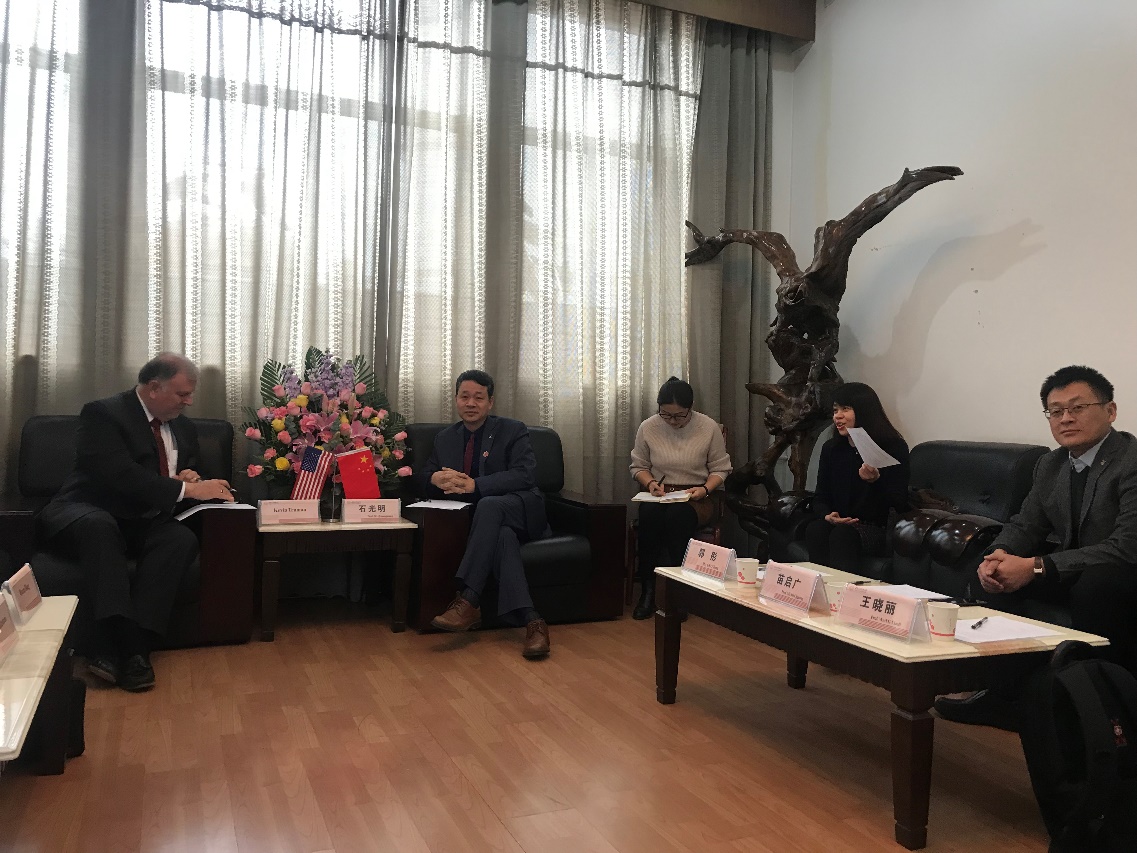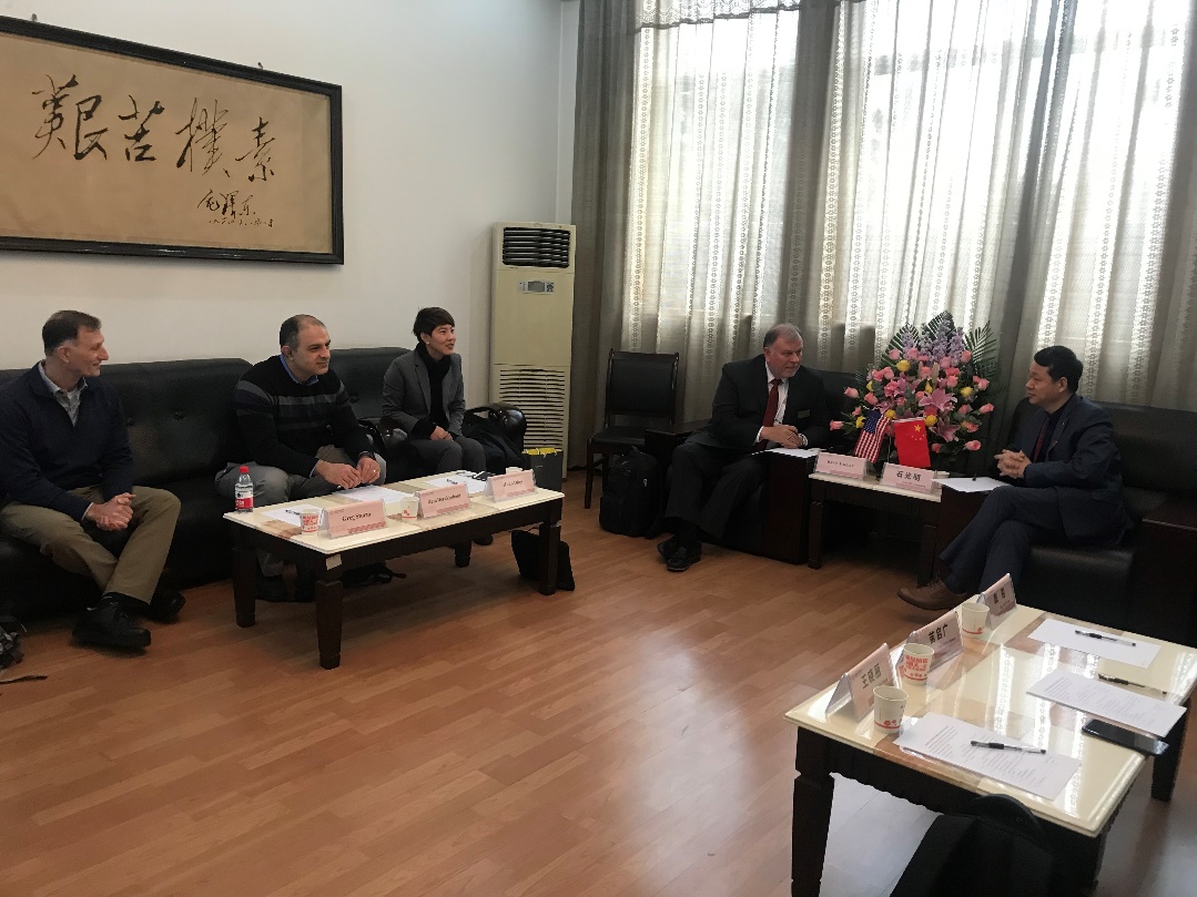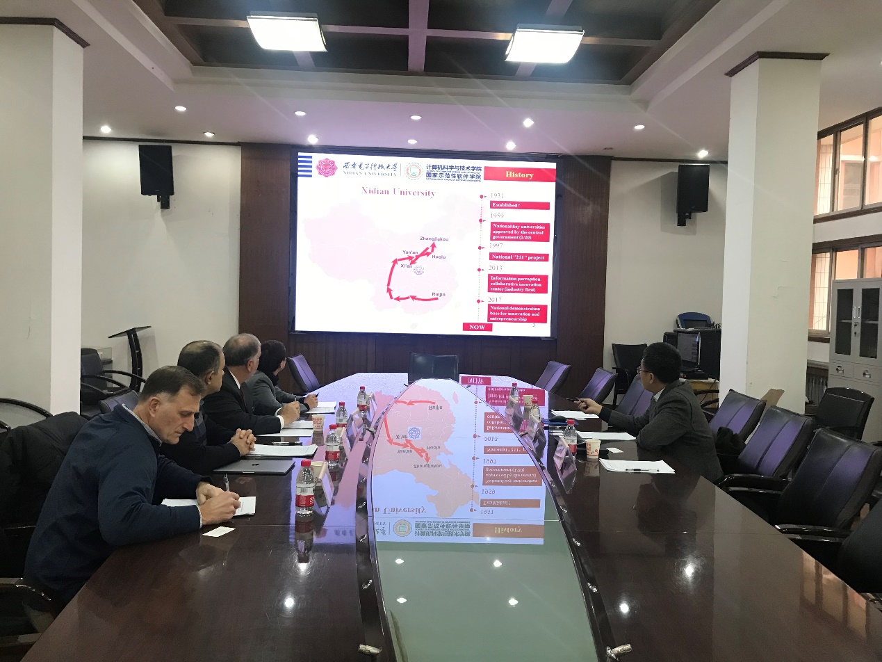 (通讯员 马丽叶 王晓丽)2018年12月7日上午,美国密苏里大学堪萨斯分校副校长Kevin Truman教授一行来访我校。计算机学院苗启广教授首先介绍了西电的历史和计算机学院的发展史,以及西电的国际合作与交流项目。然后Kevin Truman教授介绍了美国密苏里大学的相关情况。随后副校长石光明在北校区办公楼会客室会见了代表团,国际合作与交流部郭彤副处长和计算机科学与技术学院代表参加了会见。