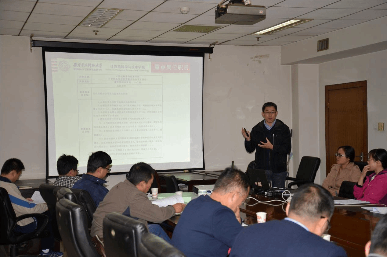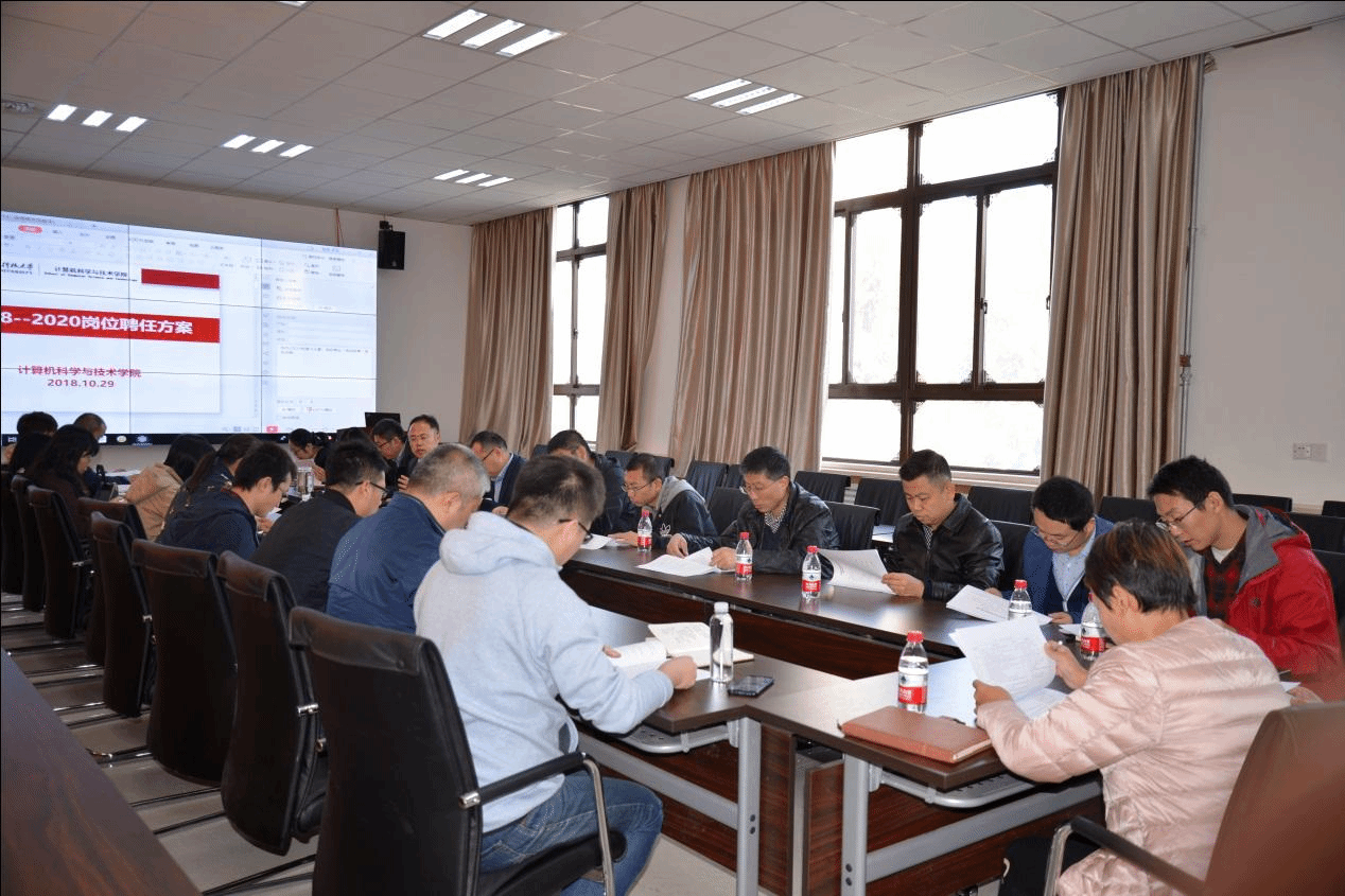 10月31至11月1日,计算机科学与技术学院学院领导深入到计算机工程系、软件工程系、计算机科学系、网络工程系和实践教学中心等5个基层单位进行2018~2020年岗位聘任方案宣讲,就学校第二轮岗位聘任学院实施方案与广大教师进行深入研讨交流。学院党委书记李青山、执行院长崔江涛、副院长赵韩强、院办主任向麟海组成宣讲团代表学院参加会议,会议由学院党委书记李青山主持。
