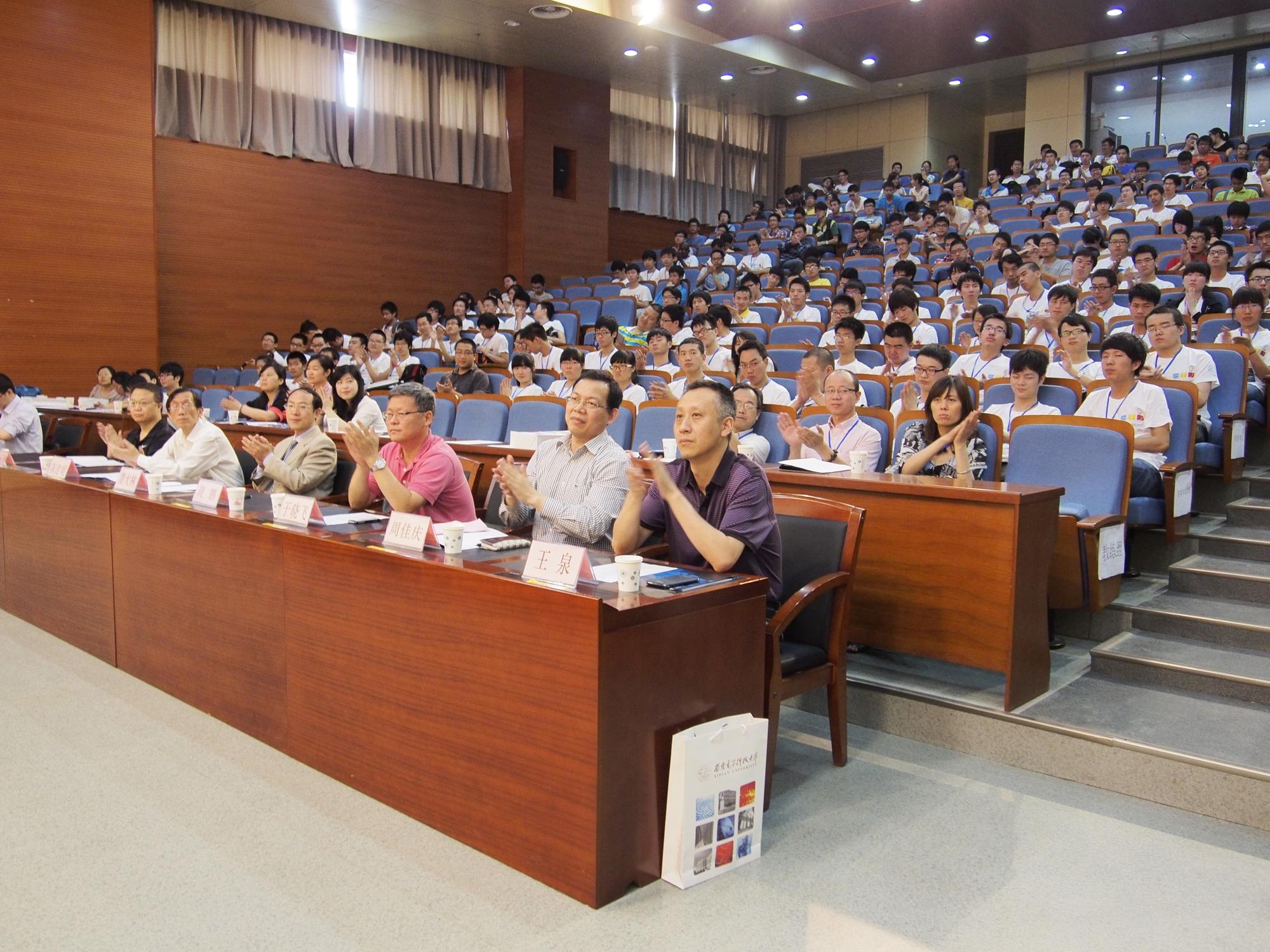 上午9点30分,开幕式在南校区行政楼206举行。130余名参赛选手和教练身着比赛服装参加了开幕式。西安电子科技大学实验室与设备处处长黄大林、计算机学院党委书记于晓飞、副院长王泉、西安交通大学软件学院副院长陈建明以及赞助商宇龙计算机通信科技有限公司西安研究所所长周佳庆先生等嘉宾出席。ACM/ICPC中国西部指导委员会委员周鹏教授专程从美国赶来出席开幕式。