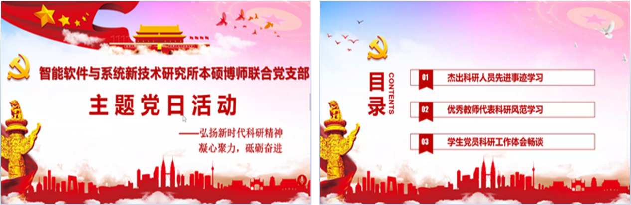 (通讯员 赵海洋)2020年3月27日下午,智能软件与系统新技术研究所本硕博师联合党支部开展了主题为“弘扬新时代科研精神”的线上主题党日活动。本次活动邀请了计算机科学与技术学院党委书记、智能软件与系统新技术研究所所长李青山老师,软件工程系主任、软件工程系党支部书记宋胜利老师,以及产教协同基地本硕博师第一联合党支部书记、智能软件与系统新技术研究所副所长李瑞老师参加。活动由支部书记王璐老师主持。