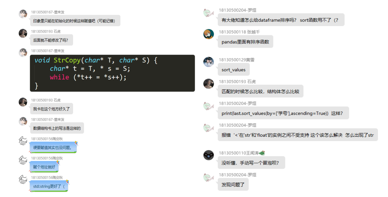 ②课堂实时互动:褚老师使用腾讯会议搭建了课堂实时互动平台,同学们可以自由发言、共享屏幕或者在留言区发言,表达自己的思路,提出不理解的问题等。老师则及时为同学们解答问题,争取课堂上不留疑惑。