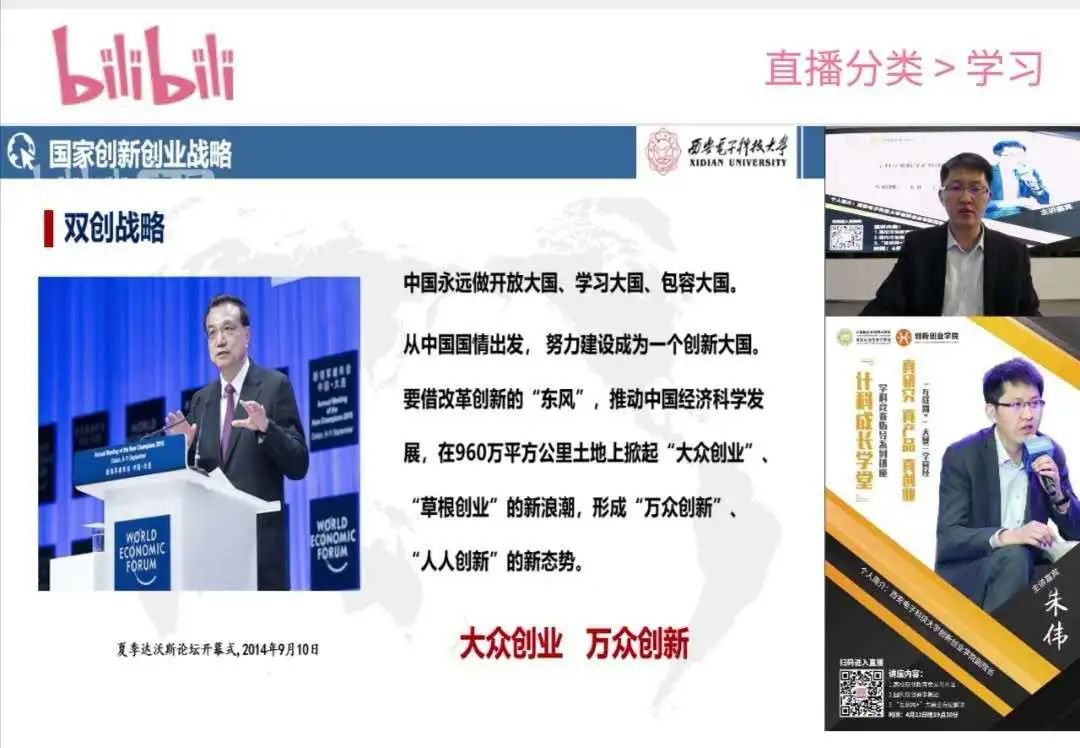 (通讯员 石春玲 王牌)4月22日晚,“计科成长学堂”学科竞赛指导系列讲座第一讲在B站直播平台火爆开讲,西电创新创业学院副院长朱伟老师以“真研究、真产品、真创业”为题,全方位解读全国“互联网+”大学生创新创业大赛,1万3千名学子云端相聚在线观看了直播并积极参与线上互动。
