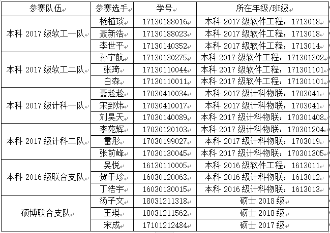 附件一:计算机科学与技术学院“学习新党章·践行十九大”党史知识竞赛参赛选手名单