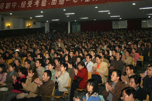 10月27日下午,我校本科教学工作水平评估迎评争优动员大会在学校大礼堂隆重举行。全体在校的校领导以及全体教职员工济济一堂参加了大会。会议由副校长陈平主持。李立书记、段宝岩校长分别作重要动员讲话。 段宝岩校长在讲话中首先简要总结了我校自2003年迎评促建工作开展以来的情况,代表全体校领导、评建指挥部对全体师生员工的辛勤工作表示衷心的感谢,对迎评争优阶段工作提出希望和要求。希望全体师生员工以饱满的精神风貌和全力以赴的工作状态投入到迎评争优工作中去,把握机遇,形成共识;积极准备,认真部署,科学指挥,把思想提高到“争创优秀”的目标上来,明确责任,全力做好各项准备工作,层层把关、分层负责、明确任务、狠抓落实,并着力创建良好的舆论环境、校园环境和评估环境;全校上下,坚定评优目标,发扬大局意识和拼搏精神,团结协作、锐意进取、务实创新、追求“一流”,把学校教学评估工作推上新的台阶,全力创建高水平的本科教育“西电品牌”。 李立书记在讲话中强调了迎评争优阶段时间的紧迫性,重点重申了本科教学工作水平评估工作的作用、目的以及与学校发展、每一个师生员工发展的关系,回顾了我校的光荣传统,鼓励全体同志坚定评优目标,发扬吃苦耐劳的精神,在迎评争优阶段,努力做好本职工作,团结协作,艰苦奋斗,实现学校评优的目标。