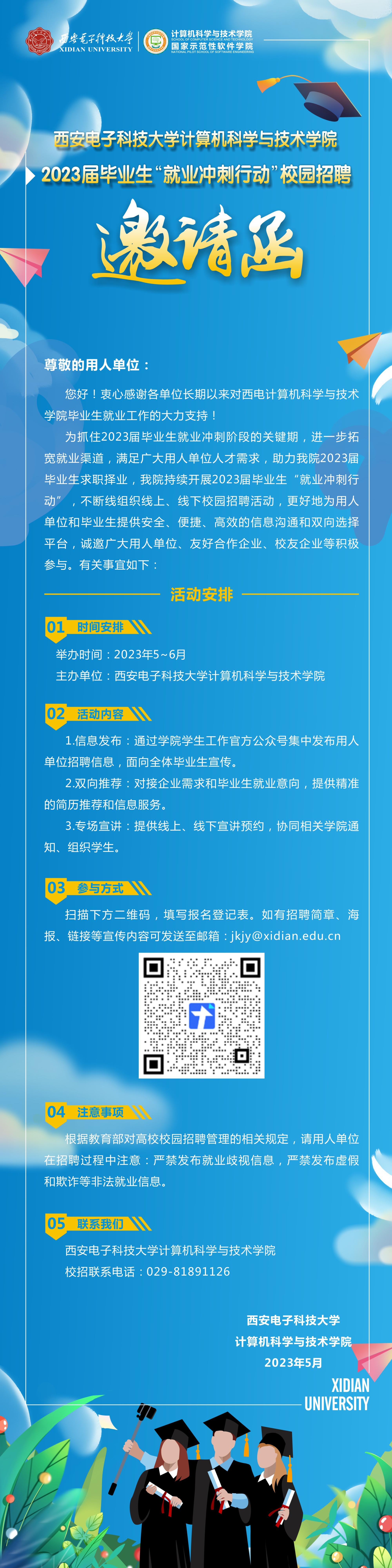 西安电子科技大学计算机科学与技术学院2023届毕业生“就业冲刺行动”校园招聘邀请函