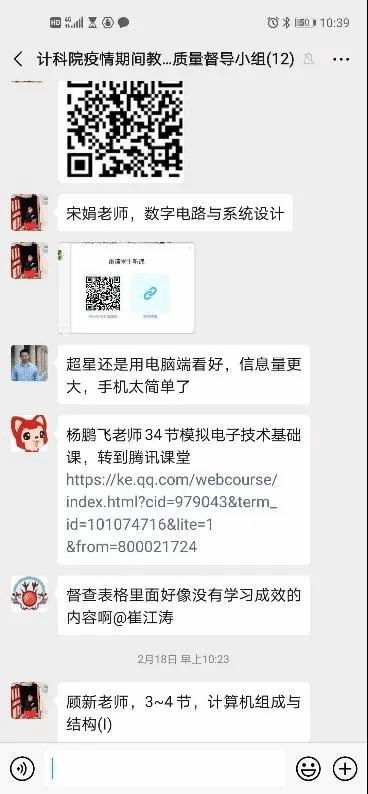 精细化管理,网格化督查。“学生需要,我们就去做好!”分管教学的副院长苗启广从“以学生为中心”出发,要求对线上教学和学生学习全过程进行精细化监控,成立了线上教学督导组,针对8个研究所的老师形成“网络化”督查模式。上课前,所有课程的链接、二维码、课堂暗号等由教务干事全部收集发到督查群。随时收集学生对教学质量的反馈意见,发现问题,解决问题,做好线上教学的自我监控和学生的舆论引导工作。
