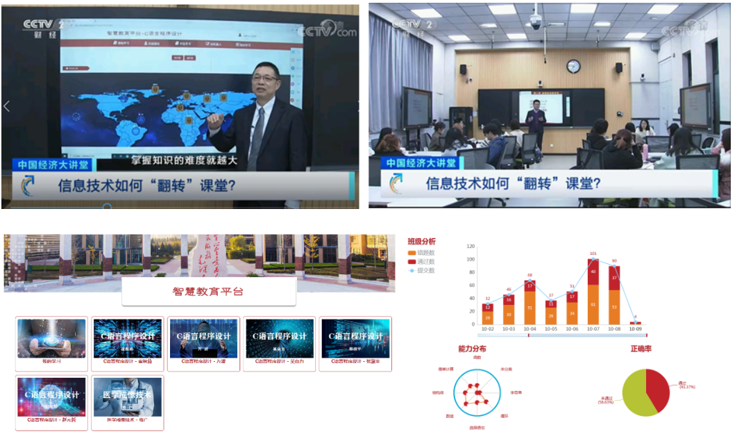全英文智能化教学新模式将传统的C语言程序设计课程中“全程教师讲授、最后统一上机”的教学模式,改变为“三师在线、重点讲授、即时评测”的全新模式。留学生在视频学习、在线考试、机器人智能问答的学习状态将会反馈“我的数据”进行大数据可视化分析,留学生可据此查漏补缺,教师也会对学生有更加全面的认识,可着重讲解疑难点,全方位建立学生的个人画像,打造基于三师型教学模式的智慧教学系统。