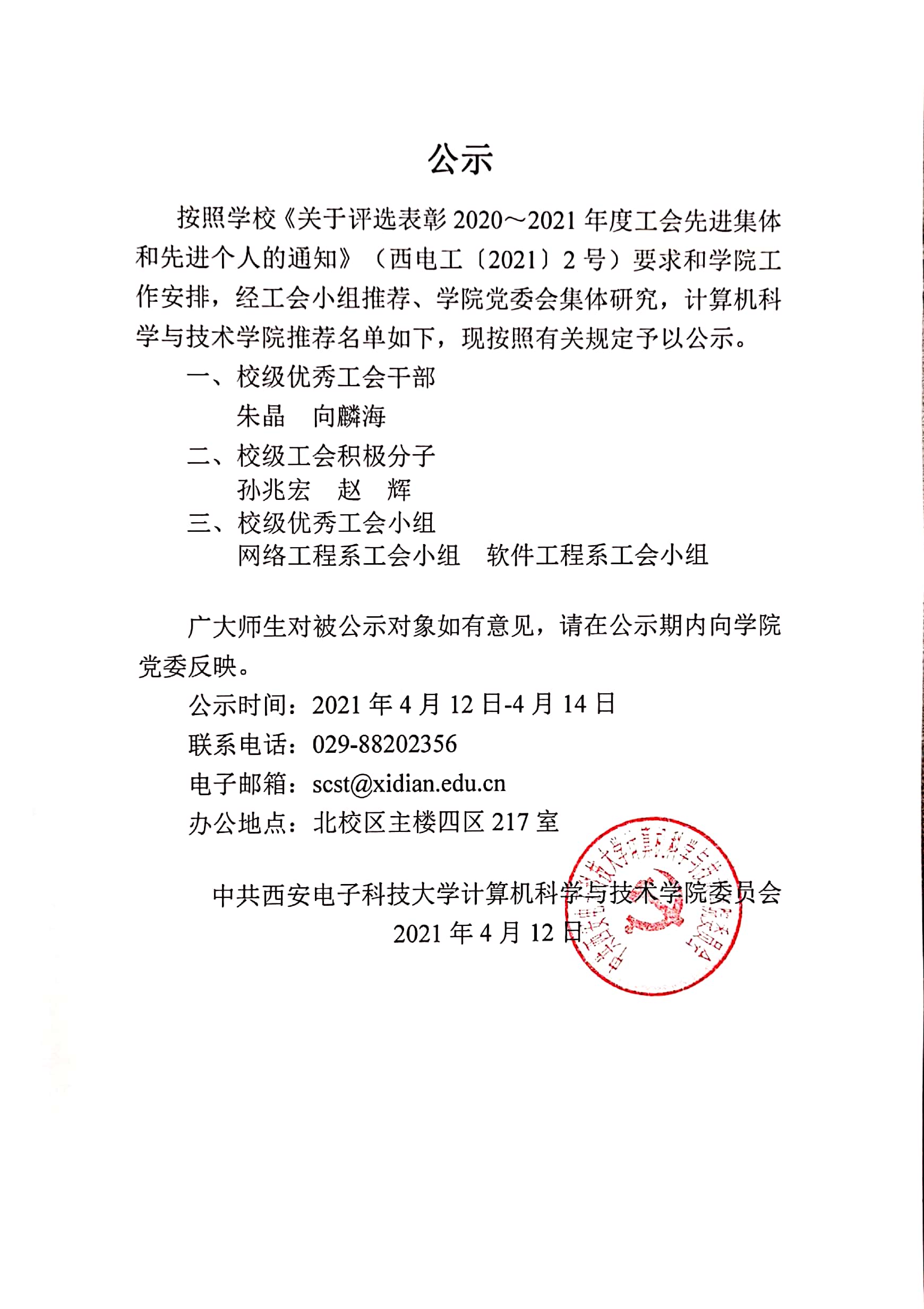 下一篇:计算机科学与技术学院关于拟推荐陕西省2021届普通高等学校优秀毕业生和优秀学生干部名单的公示
