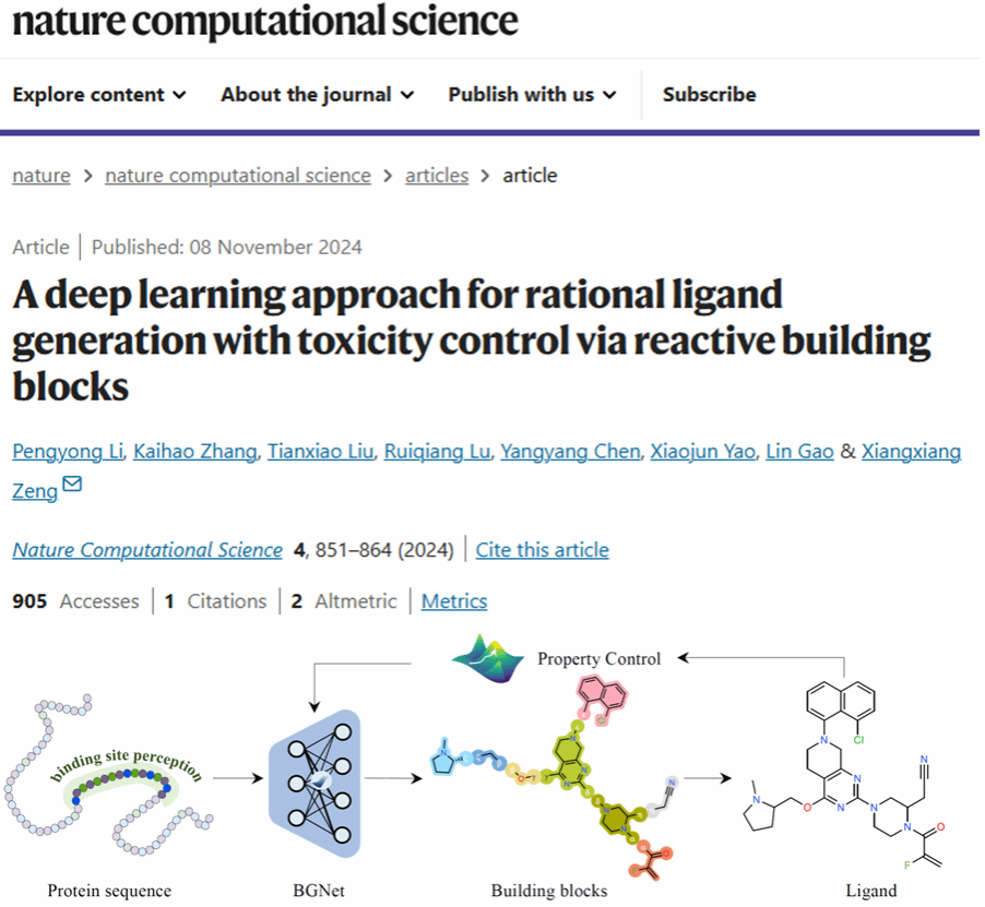 西安电子科技大学计算机科学与技术学院西安市计算生物信息学重点实验室里,高琳教授团队青年教师李朋勇正带领学生们沉浸在人工智能辅助药物研发的前沿研究中。近日,他们的研究成果以“一种通过反应性分子砌块进行合理配体生成与毒性控制的深度学习方法(A deep learning approach for rational ligand generation with toxicity control via reactive building blocks)”为题,登上了国际TOP期刊 Nature Computational Science,为药物设计领域带来了革新。