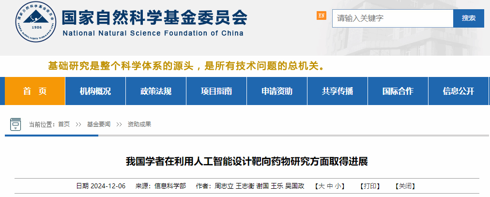 国家自然科学基金委报道研究成果
