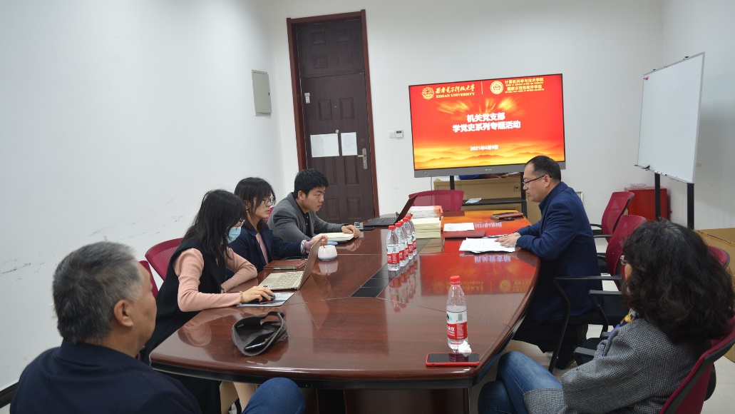 机关党支部书记赵韩强首先传达了习近平总书记在党史学习教育动员大会上的重要讲话精神,教育部党组书记、部长陈宝生同志在教育部召开党史学习教育动员大会的讲话精神,学校党委书记查显友同志在学校召开的党史学习教育动员大会上的讲话精神,带领全体党员深入学习了《西安电子科技大学关于开展党史学习教育的实施方案》,从六个方面讲解了学习内容,分阶段安排了本年度学习安排,分层次讲述了五个方面重点任务。同时,与会同志集中学习了习近平总书记致厦门大学建校100周年的贺信。他谈到,“学党史”是贯穿2021全年工作的一项重大政治任务,机关支部党员同志要提高政治站位,统一思想,自觉学习习近平总书记重要讲话精神,全力学好党史、学习老一辈革命的英雄事迹,践行“全心全意为人民服务”的办学宗旨,以良好的精神风貌和扎实的工作态度迎接建党100周年和建校90周年。
