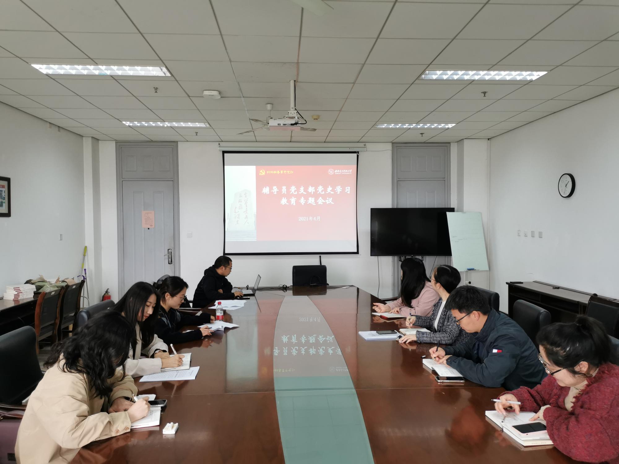 (通讯员 王牌)4月7日,计算机科学与技术学院辅导员党支部在南校区G楼514会议室召开党史专题学习会议,集体学习《习近平总书记在党史学习教育动员大会上的讲话》、《干实事、解难题、谋大事、创新事、长本事,扎实推进党史学习教育,办好人民满意的教育》、《西安电子科技大学关于开展党史学习教育的实施方案》、《查显友书记在学校党史学习教育动员大会上的讲话》文件精神,支部全体成员参与学习,会议由支部书记梁双杰主持。