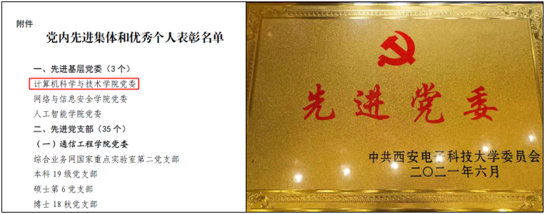 西安电子科技大学计算机科学与技术学院(国家示范性软件学院)始于1958年中央军委批复设立的导弹系统专用计算机专业,是全国最早设立计算机科学与技术专业的院校之一。学院党委于2018年7月成立,设师生党支部25个,其中教职工党支部7个,学生党支部18个。师生党员共1188人。学院党委连续三年被评校党建专项考核优秀,2019年入选校首批四个“三全育人”综合改革试点单位之一,2020年被评校标杆院系创建培育单位,连续两年被评校扶贫专项考核优秀。