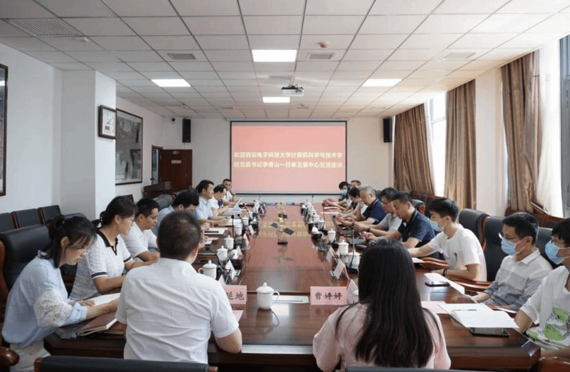 卫星中心党总支书记、副主任刘社虎对西电计算机科学与技术学院党委书记李青山一行的到来表示欢迎。他详细介绍了卫星中心党总支党建工作的创新举措,希望能将校企支部结对共建、党建业务深度融合引领落到实处,通过科研合作、技术交流、人才交流为两个单位的共同发展做出贡献。