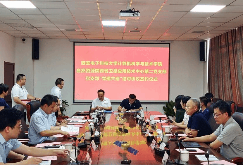 (通讯员 何敏之 邢智琪)8月24日下午,西电计算机科学与技术学院大数据与视觉智能研究所本硕博师联合一支部与自然资源陕西省卫星应用技术中心二支部结对共建签约仪式在自然资源陕西省卫星应用技术中心举办。计算机科学与技术学院党委书记李青山,大数据与视觉智能研究所所长、网教院院长苗启广,学院党委副书记张莹莹及联合党支部师生党员代表一行12人赴中心调研交流并参加签约仪式。