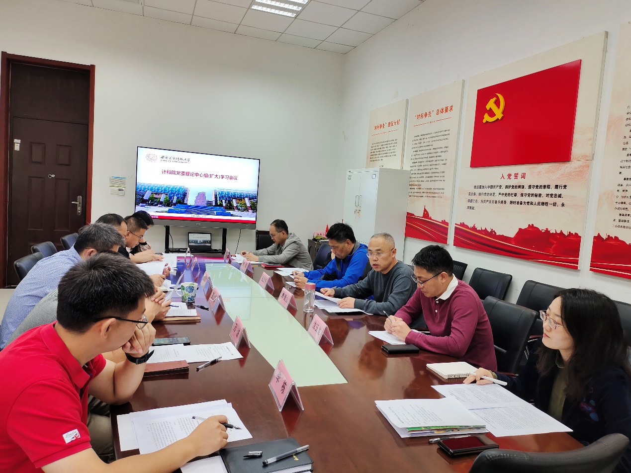 (通讯员 同榛)8月31日上午,计算机科学与技术学院党委在北校区主楼四区107会议室召开党委理论中心组(扩大)学习会议。学院班子成员、两委委员、教职工党支部书记和团委书记参加了集体学习,会议由学院党委书记李青山主持。