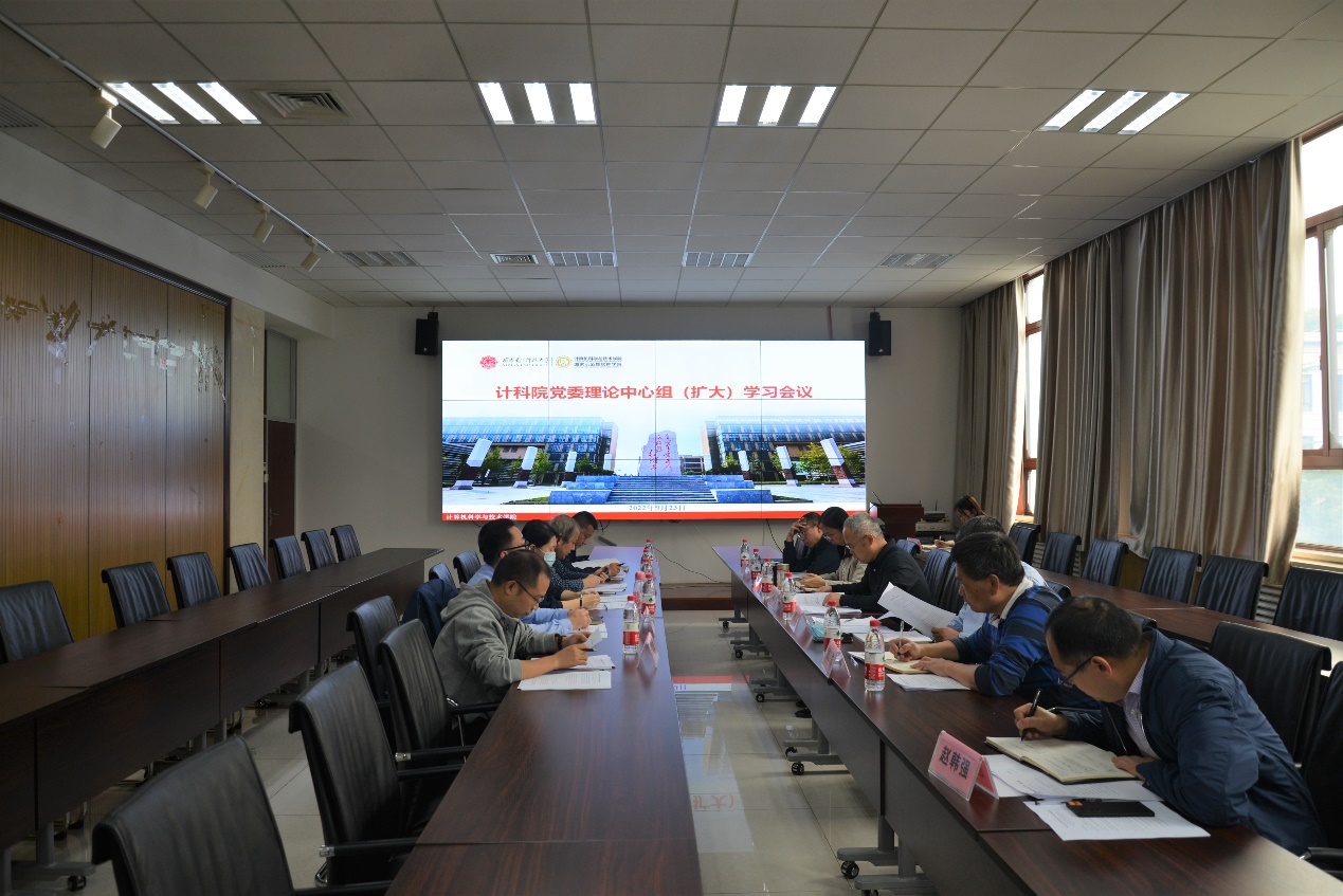 (通讯员 同榛)9月23日下午,计算机科学与技术学院党委在北校区主楼二区319会议室召开党委理论中心组(扩大)学习会议。学院班子成员、两委委员、教职工党支部书记、研究所所长、副所长参加了集体学习,会议由学院党委书记李青山主持。