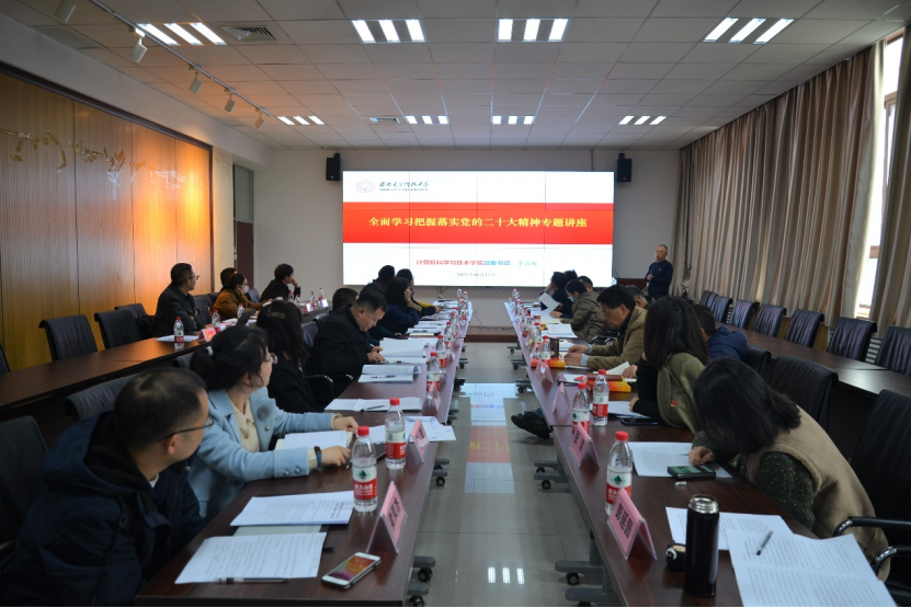 (通讯员 同榛)11月17日上午,计算机科学与技术学院党委在北校区主楼二区319会议室召开领导班子专题读书班暨党委理论中心组(扩大)学习会议,开展党的二十大精神第一次专题学习研讨。学院班子成员、两委委员、各党支部书记、系所中心负责人参加了集体学习,会议由学院党委书记李青山主持。