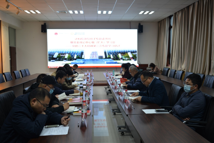 (通讯员 同榛)11月24日下午,计算机科学与技术学院党委在北校区主楼二区319会议室召开领导班子专题读书班暨党委理论中心组(扩大)学习会议,开展党的二十大精神第三次专题学习研讨。学院班子成员、两委委员、教职工支部书记、华山特聘教授以上人员参加了集体学习。会议邀请校发展规划部部长邓成专题宣讲,校第三督导组到会指导。会议由学院党委书记李青山主持。