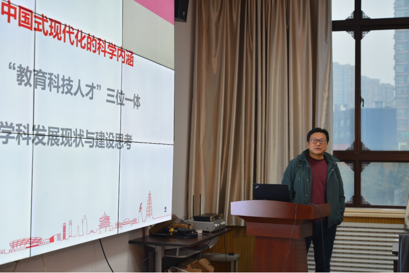校发展规划部部长邓成做《中国式现代化视域下的西电学科建设》专题宣讲。习近平总书记在党的二十大报告中强调,以中国式现代化全面推进中华民族伟大复兴。党的二十大报告首次将教育科技人才一体部署。结合学习贯彻党的二十大精神,邓成解读了加快推进教育现代化对助力中国式现代化提供的基础性和战略性支撑作用,并从服务中华民族伟大复兴的战略全局和服务世界百年未有之大变局的角度,分析了高校在服务科教兴国战略、创新驱动发展战略和人才强国战略中的地位和作用。结合新一轮“双一流”建设学科布局和西电“十四五”规划目标,在分析我校学科现状以及面临的形势和任务的基础上,邓成介绍了学校学科建设的思路与实践路径,以计算机科学与技术学科为例,从学科发展布局、标志性成果培育和人才引育等方面提出学科发展对策和建议。