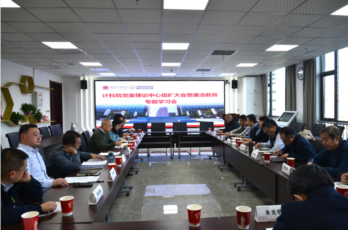 (通讯员 同榛 冯雨晴)为扎实推进党风廉政建设,筑牢廉洁自律思想防线,12月6日下午,计算机科学与技术学院党委在南校区网安大楼A1区223会议室召开党委理论中心组扩大会暨廉洁教育专题学习会,邀请校纪委副书记、监察处处长靳珠作廉洁教育专题报告。院党政班子成员、党委委员、纪委委员、研究所所长副所长、省级以上人才、大项目负责人等20余人参会,会议由学院党委书记李青山主持。