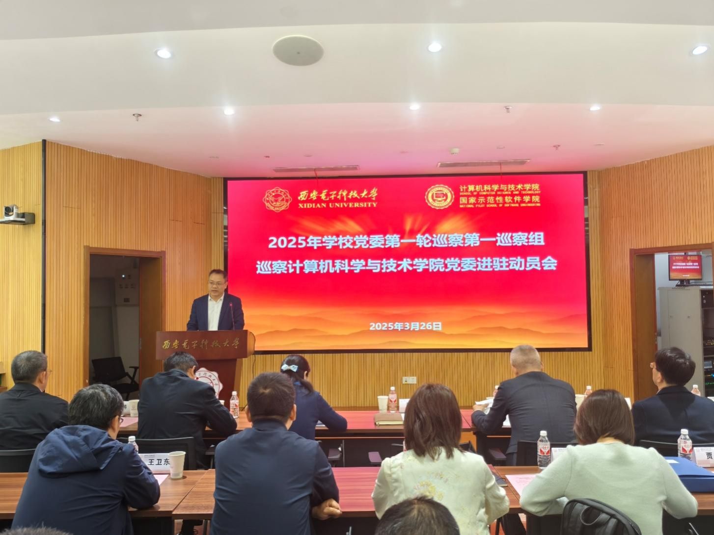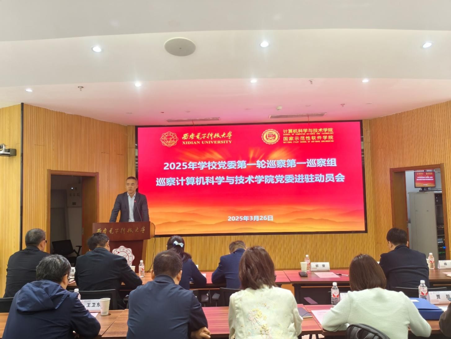 (通讯员 同榛)根据学校党委的统一部署,3月26日下午,2025年学校党委第一轮巡察第一巡察组巡察计算机科学与技术学院党委进驻动员会在网安大楼A-101报告厅召开。校党委副书记、纪委书记郭俊,巡察办负责同志、巡察组全体人员、学院党政班子成员和师生代表等100余人参加。会议由学院执行院长崔江涛主持。