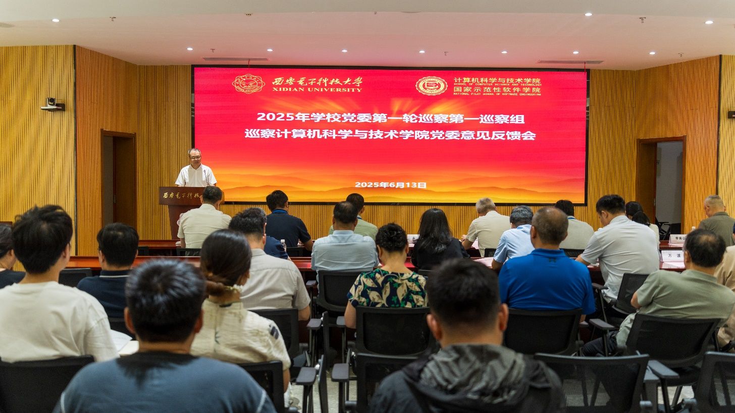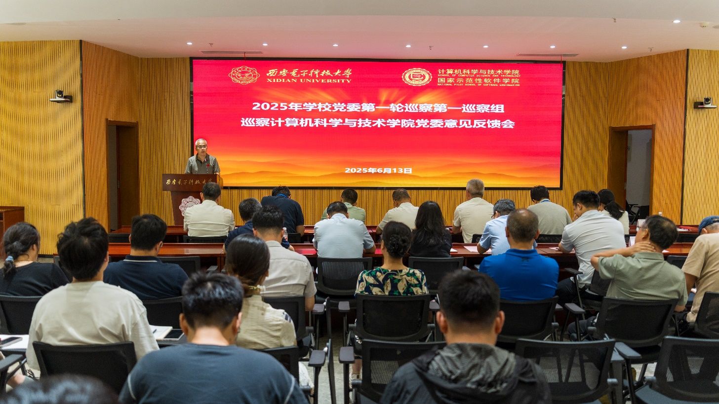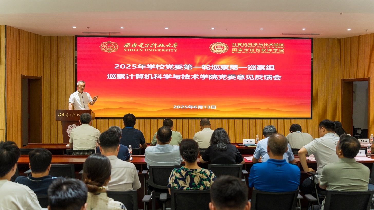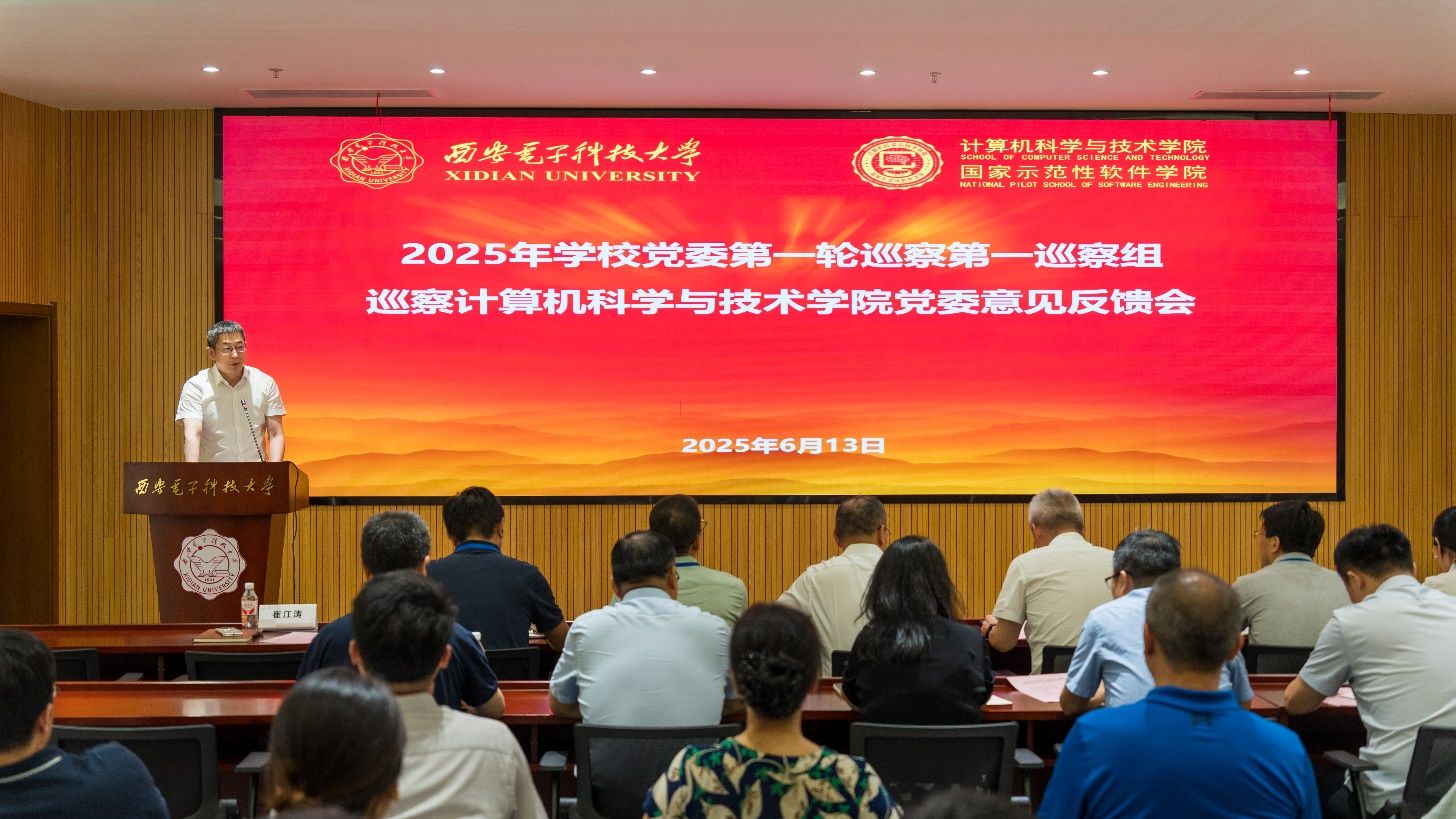 根据学校党委的统一部署,6月13日下午,2025年学校党委第一轮巡察第一巡察组巡察计算机科学与技术学院党委意见反馈会在网安大楼A103会议室召开。校党委副书记、纪委书记郭俊,巡察办负责同志、巡察组领导、学院党政班子成员和师生代表等近100人参加。会议由学院执行院长崔江涛主持。