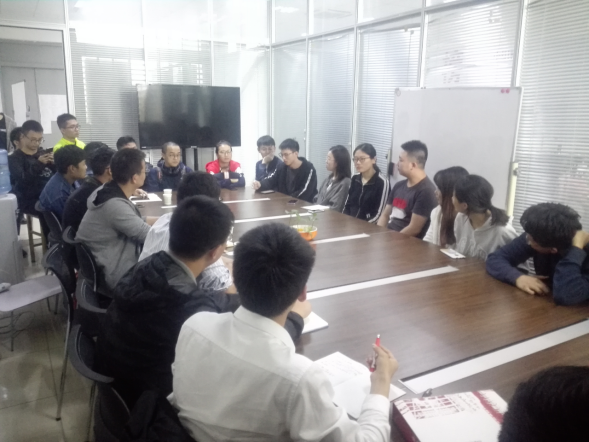 在座谈会开始之前,沈玉龙老师先让学生们就自己正在参与的工程或科研项目进行简单的介绍。在倾听同学们的介绍后,沈玉龙老师说:“在过去,科研的主力是博士,后来逐渐变成硕士研究生。而现在的趋势是本科生逐步成为科研的主体。你们都很优秀。” 随后的面对面交谈中,学生们畅所欲言,倾诉了自己学习实践中的困惑。同学们积极地和老师交流自己近期的科研项目,同时,沈玉龙老师也对每一位同学的情况针对性地给出了意见和建议。