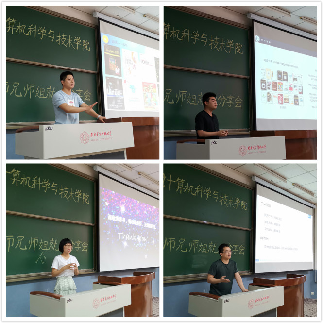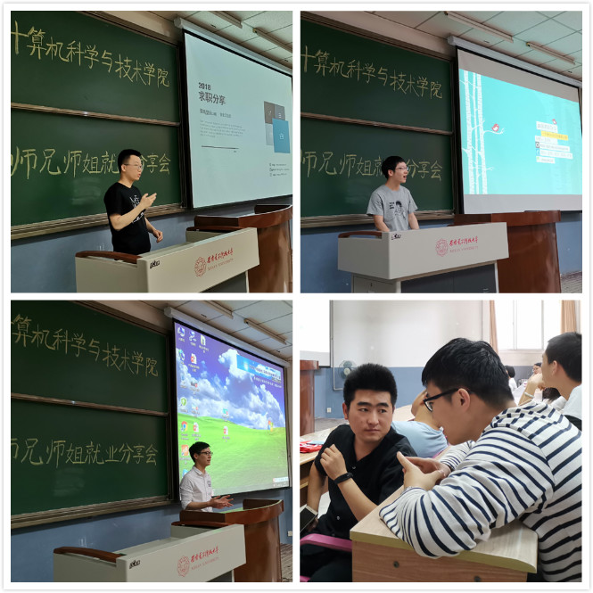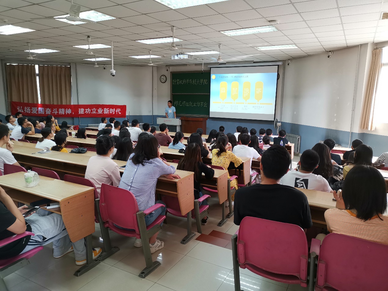 (通讯员 郝晓阳)在研三青年学子即将毕业离校工作之际,为帮助研二青年学子更好地完成“金九银十求职季”的百日冲刺,2019年5月23日上午,在北校区阶梯教室J-208,西电计算机科学与技术学院研究生党支部联合举办“弘扬爱国奋斗精神,建功立业新时代” 主题党日活动。本次活动旨在帮助研二青年学子对不同企业类型和不同岗位类型有更加清晰的认识,充分利用师兄师姐们的宝贵求职经验帮助自身在最短的时间内做最有效的准备。与此同时,加强了即将毕业的优秀学子与学院师弟师妹间的情感纽带。通过这一方式,让研二研三青年学子能够更好的投入到祖国IT建设的先锋队中,在新时代建功立业、发挥更大的作用。