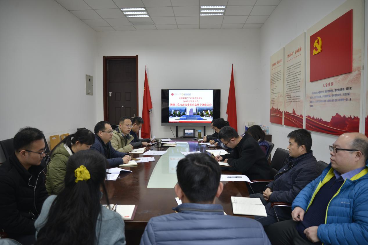 (通讯员 同榛)1月11日上午,计算机科学与技术学院班子2018年民主生活会教职工党支部支委征求意见座谈会在北校区主楼四区107会议室召开。教职工党支部支委参加了会议,会议由学院党委书记李青山同志主持。学院副院长苗启广、赵韩强参加了座谈。