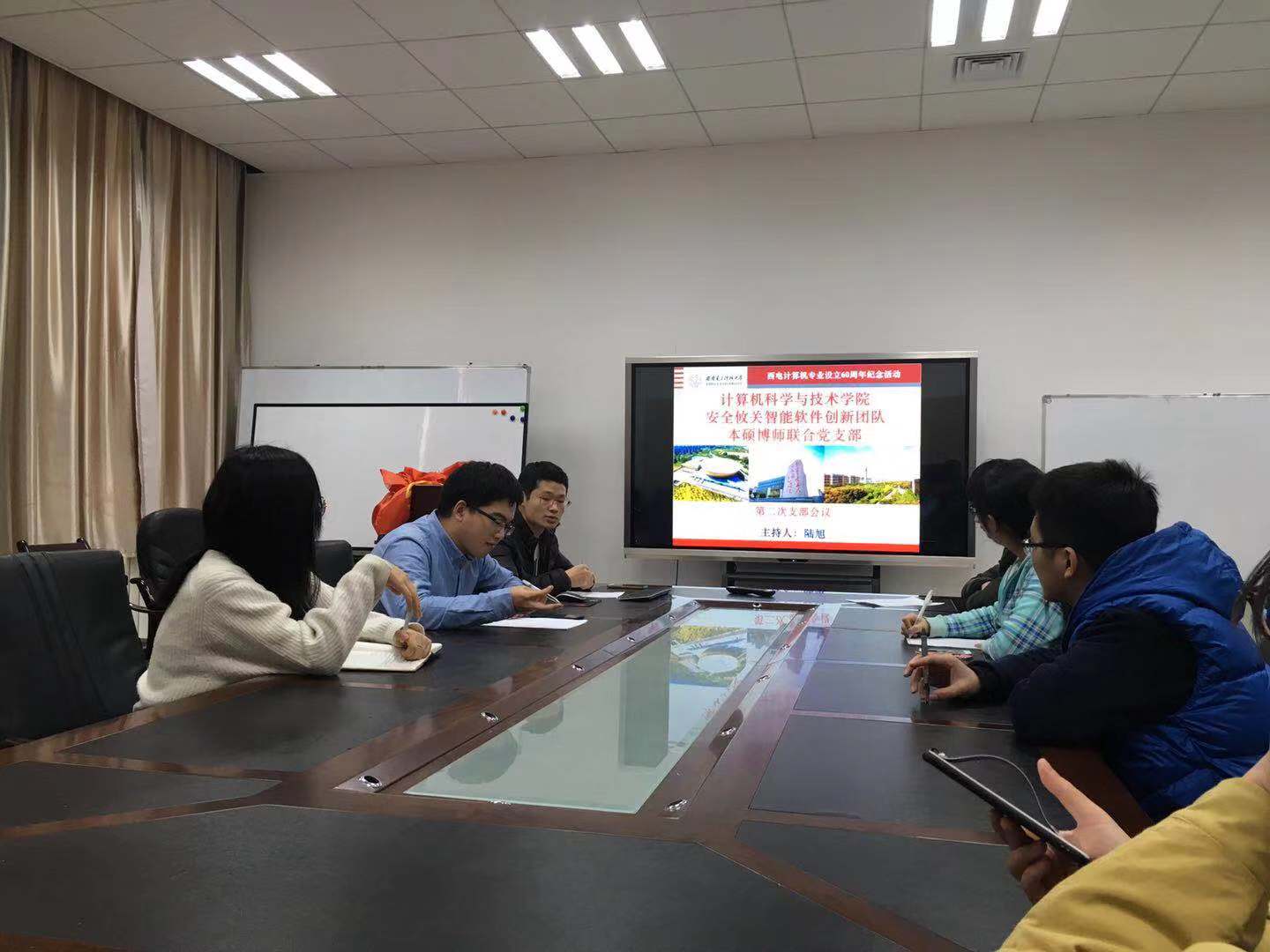 (通讯员:郭佳琦 陆旭)时值西安电子科技大学计算机科学与技术学院建专业60周年之际,为进一步巩固支部凝聚力,提升党员先锋意识,坚定师生科研信念,计科院安全攸关智能软件创新团队本硕博师联合党支部于12月13日下午在主楼四区203会议室开展了题为“西电计算机专业设立60周年纪念”的党日活动。在支部书记陆旭同志的组织与主持下,全体支部党员深入了解校史、院史,感受老领导、老教授西迁路上的付出,交流院庆60周年个人心得。