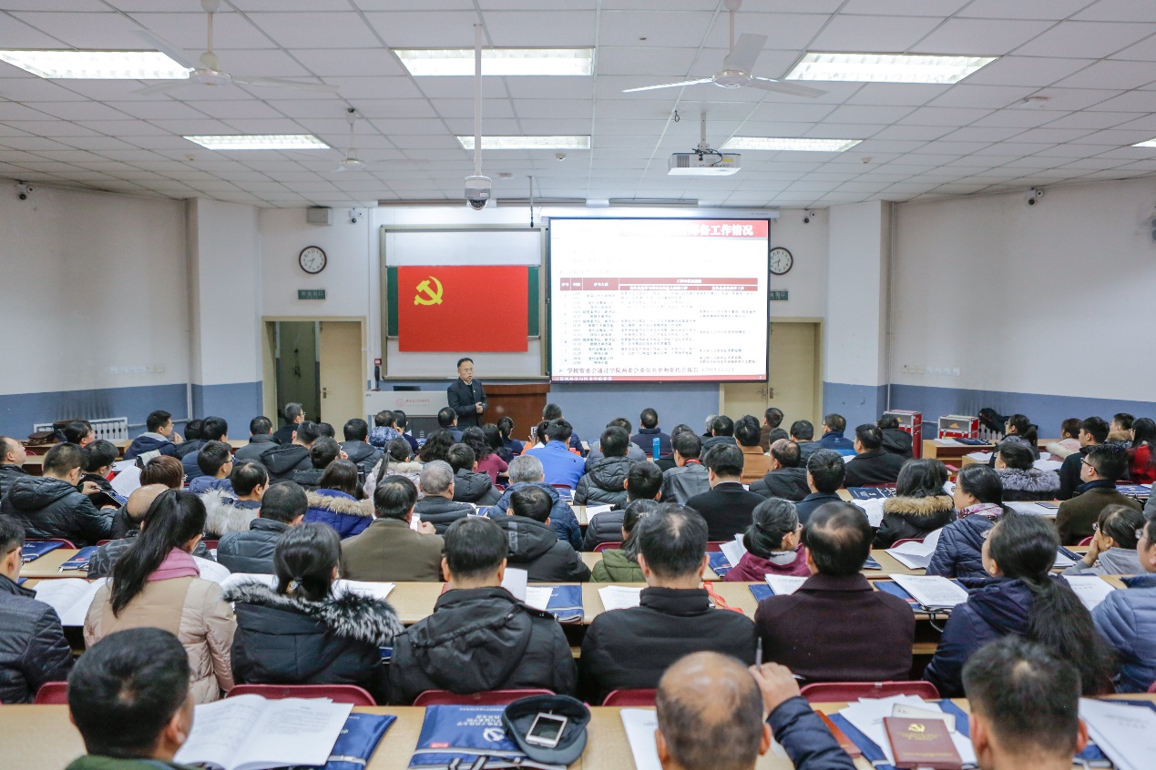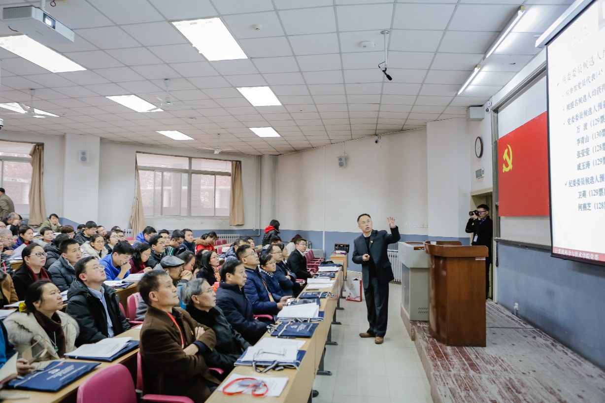 会上,学院党委书记李青山向大会作了党代会筹备情况的报告。李青山就学院党代会筹备工作领导机构、党代表选举、委员候选人酝酿、党代会报告起草等工作分别进行了汇报。2018年10月16日,学院成立党代会筹备工作领导小组,在领导小组的组织领导下,按照党章和基层组织选举工作的有关规定,遵循民主集中制原则和上下结合、反复酝酿的组织程序,共选举产生145名党员代表,完成了委员候选人酝酿工作。学院同时成立了党代会报告起草小组,经过精心组织撰写、广泛征求意见,多次修改,学院班子集体讨论,进一步完善,形成大会工作报告。