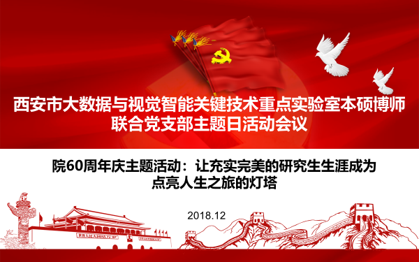 (通讯员:段金龙 刘向增)为进一步增强师生党员的团队凝聚力与集体荣誉感,弘扬爱国主义精神,树立正确的社会观、价值观和人生观,同时引导学生对科研与生活进行合理规划,度过充实完美的研究生生涯,12月7日下午,西安市大数据与视觉智能关键技术实验室本硕博师联合党支部在主楼四区209会议室召开了主题为“让充实完美的研究生生涯成为点亮人生之旅的灯塔”的主题日活动会议。支部书记刘向增同志、全体博士党员和2018级硕士党员参加会议,会议由副书记葛道辉同志主持。