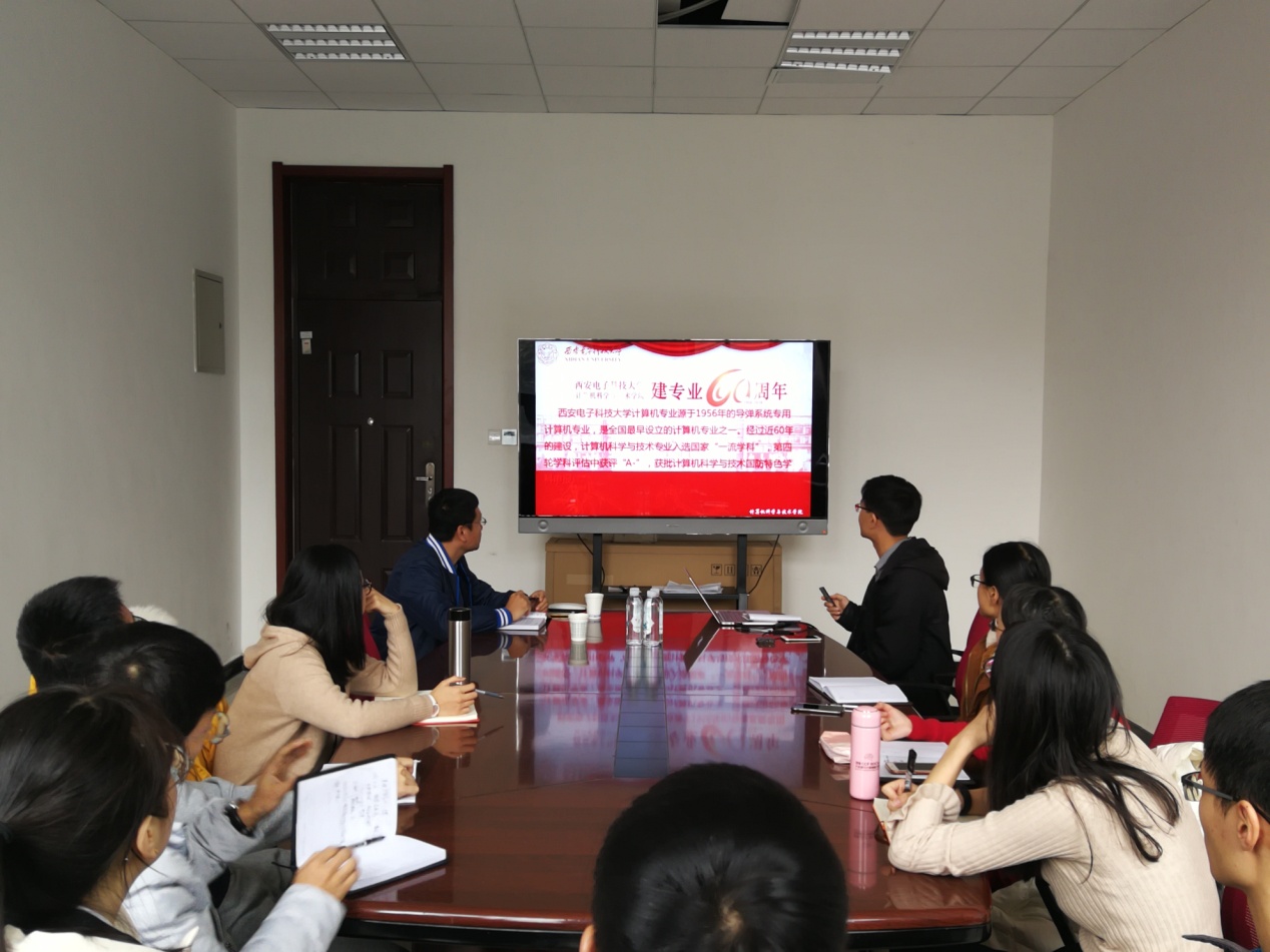 首先,为庆祝计算机科学与技术学院建专业60周年,葛道辉同志带领大家回顾了计算机科学与技术学院发展的光辉历程,从60年前的艰苦创业到如今的“双一流”重点建设学科,学院历年来取得的累累硕果和为国家建设培养的卓越人才无不体现了脚踏实地、自强不息的西电精神和求真务实、全心全意为人民服务的历史使命。通过回顾学院历史提升了党员同志们的荣誉感,增强了传承西电精神的使命感和责任感。