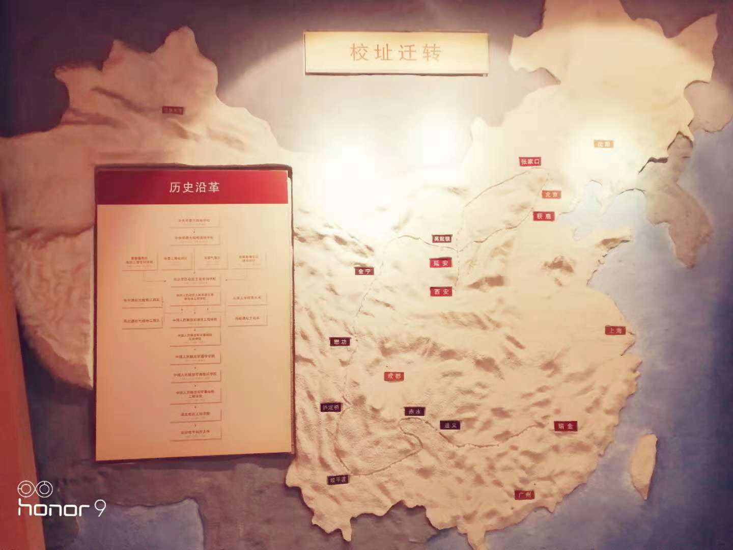 进入展览馆,首先映入眼帘的便是校址迁转地图。自1931年诞生以来,肩负中国革命、现代化建设以及民族复兴的历史重任,西安电子科技大学辗转经历了“红军通校”、“延安通校”、“华北电专”、“军委工校”、“西军电”、“西北电讯工程学院”等历史阶段;从红色瑞金、烽火延安、塞上张家口到古都西安,学校不断发展壮大,走过了一条波澜壮阔的创业之路,为人民军队的现代化建设、电子工业的振兴以及国民经济信息化做出了卓越贡献,谱写了一曲艰苦奋斗、自强不息的壮丽凯歌。