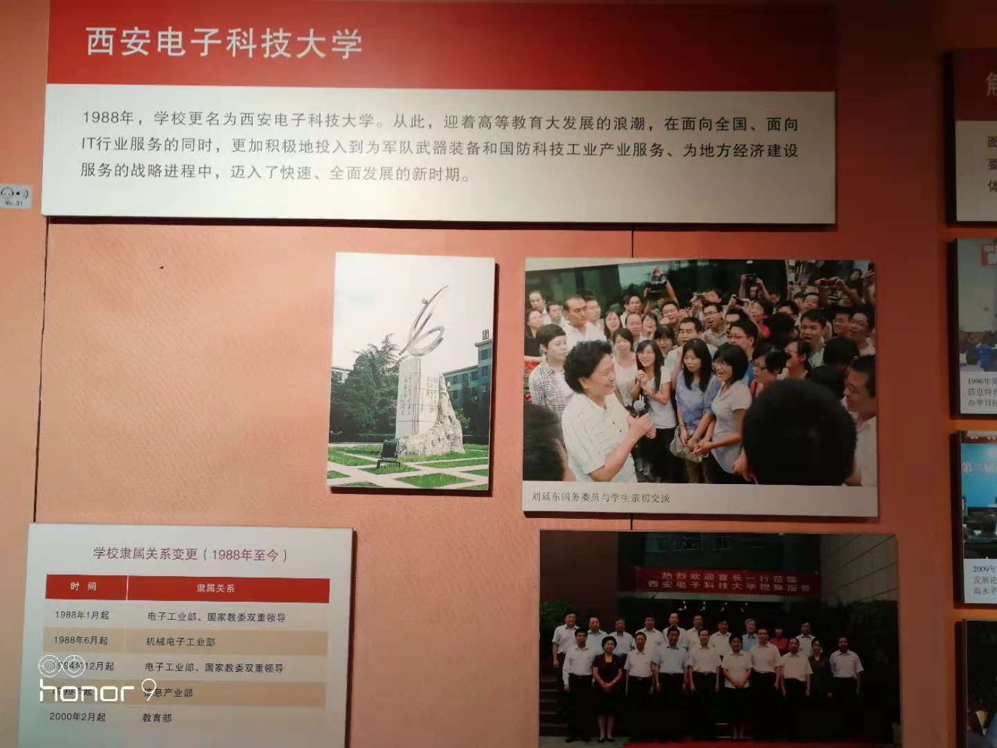 在历经长征路上硝烟洗礼、塞上张家口办学之后,学校迎来了新的发展机遇。1958年,为响应国家号召,支持西北建设的总体部署和学校长远发展的考虑,我校西迁古都西安,开启了扎根西部、创业育人的新征程。1988年,学校正式更名为西安电子科技大学,明确办学宗旨,紧扣改革和发展两大主题,抓住机遇,勇创一流;并提出“闯出中国,走向世界”的目标,“一条内线,增强实力,两条外线,国际国内”的拓展思路逐步确立,对外交流与合作更加频繁,学校发展呈现前所未有的活力。根据国家要求,大力发展研究生教育,并于2000年获教育部批准我校正式试办研究生院,标志着学校办学水平又上新台阶。2004年,为满足不断扩大的日常教学及科研需求,西安电子科技大学南校区破土动工,园林式的现代校园与北校区典雅宁静的氛围交相辉映,南北校区协调运转,共同为学校百年发展奠定了扎实的基础。不断丰富的课余活动,有挑战性的课外竞赛,使得校园内充满青春活力,被誉为“高层次人才培育的摇篮,高水平科学研究的基地”。2017年迈入“双一流”建设高校行列,在新一届校领导班子的带领下,上下一心,积极推进学校综合改革,奋力开启建设特色鲜明一流大学新征程。