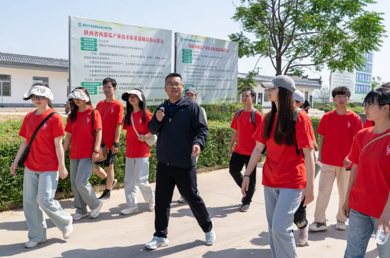 (通讯员 李栋)5月24日上午,由学校党委宣传部主办的“瓜棚里的思政课”在蒲城县西电产学研一体化农掌门示范基地成功举办。为进一步引导青年学子切身感受科技助力乡村振兴所取成效,涵养青年主动担当作为,计算机科学与技术学院组织13名本、硕团学骨干全程参与此次田间地头的沉浸式思政直播课,同时赴学院对口帮扶单位—蒲城县兴镇中心小学开展“小我融入大我”社区实践活动。学院党委副书记张莹莹、黄成龙参与此次活动。