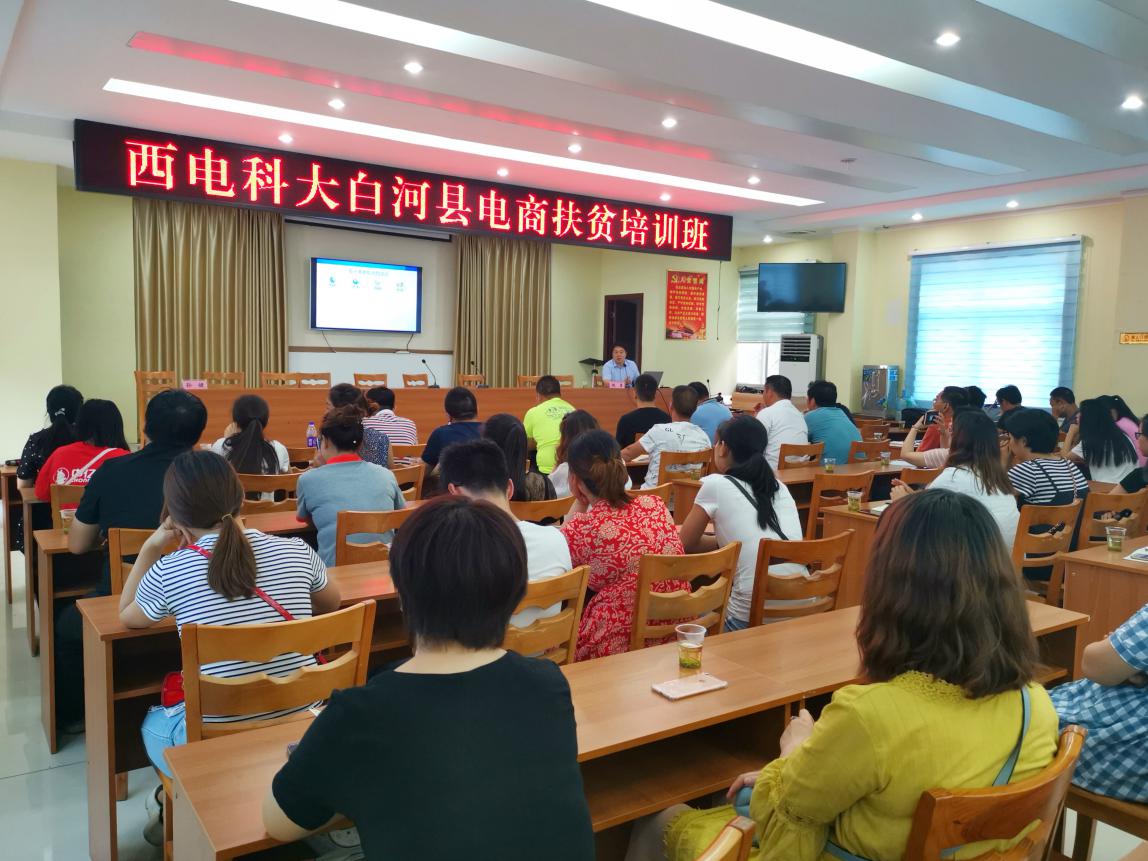 6月19日下午两点,西安电子科技大学-白河县电商扶贫培训班正式开班,近40余位白河县电商从业者、有创业能力的种植户等带来了丰富的电子商务“大餐”。开班式上,学院党委书记李青山回顾了学院扶贫白河县的工作进展,并向各位学员介绍了学院基本情况。他谈到,本次培训依托已建立的产学研一体化示范基地,一是为当地百姓拓宽农特产品销路提供重要渠道,二是发挥信息技术在乡村振兴战略中的支撑作用。培训内容围绕电子商务基础及应用,希望各位学员学有所获、学以致用。白河县城关镇镇长余志威对扶贫工作组一行表示感谢,希望各位学员充分珍惜难得的学习机会,带着问题学、奔着成效学,以此为契机助推本地健康无污染的山货出山,实现收入增长。其中,学院姚勇副教授的授课内容为《电子商务及其发展》,以通俗的语言、专业的视角,深入浅出地阐述了电子商务的概念、影响、分类、发展现状及发展趋势等,现场反响热烈。