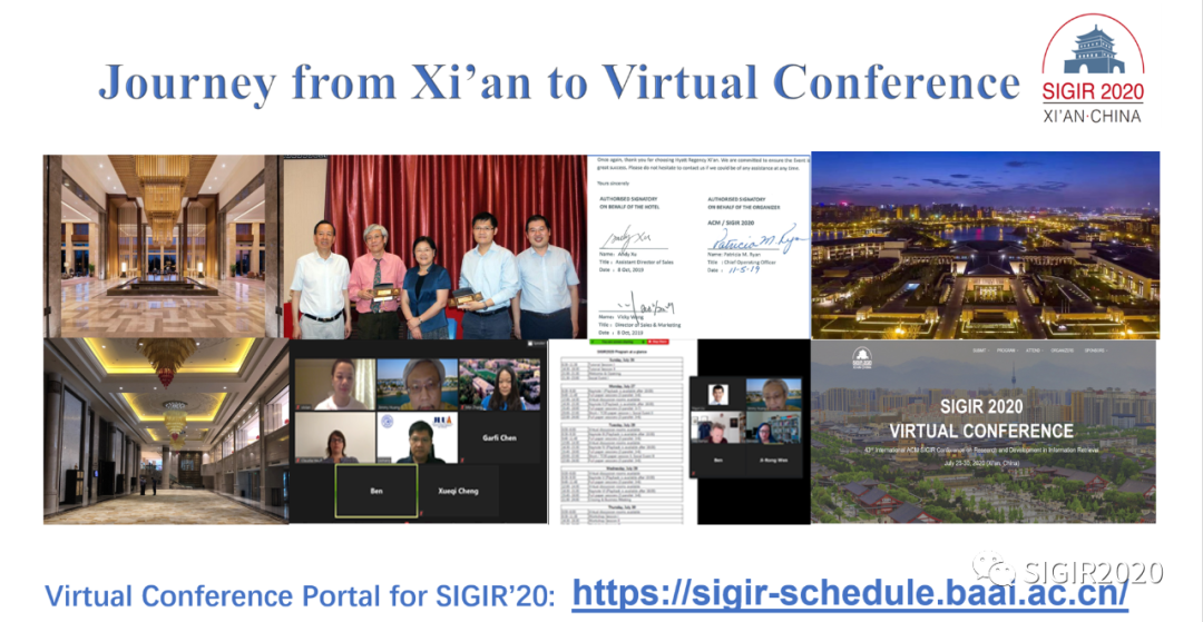 本次会议由中国科学院计算所程学旗研究员、吉林大学常毅教授和加拿大约克大学Jimmy Huang教授担任大会主席,西安电子科技大学原副校长、现重庆邮电大学校长高新波教授担任LocalChair,计算机科学与技术学院苗启广教授负责了大会与学校的相关交流协调以及大会筹备相关事宜。由于受疫情影响,大会采用线上会议模式,并面向全球直播。大会共收到论文投稿1180篇,共录取340篇。其中,长文投稿555篇,最终录用147篇,录用率约26%;短文投稿507篇,最终录用152篇,录取率约30%。除此之外共有1,516名学者注册了本次大会,ACM SIGIR 2020成为SIGIR有史以来投稿量最高、注册人数最多的一届学术盛会。