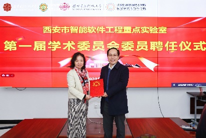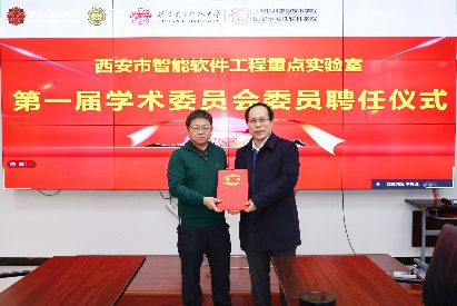 计算机科学与技术学院副院长沈玉龙宣布重点实验室第一届学术委员会成立,张进成为各位委员颁发了聘书。