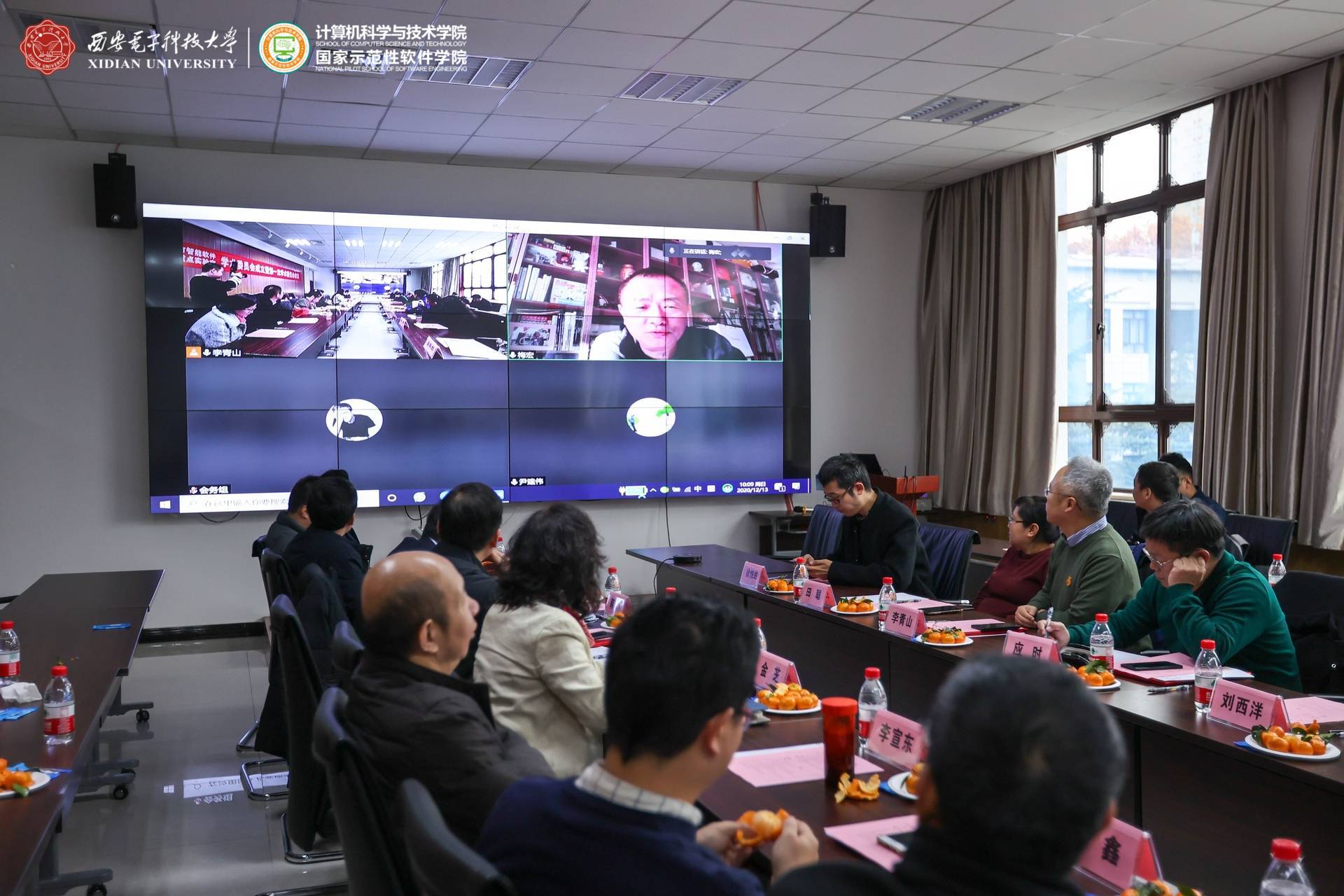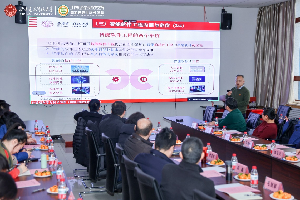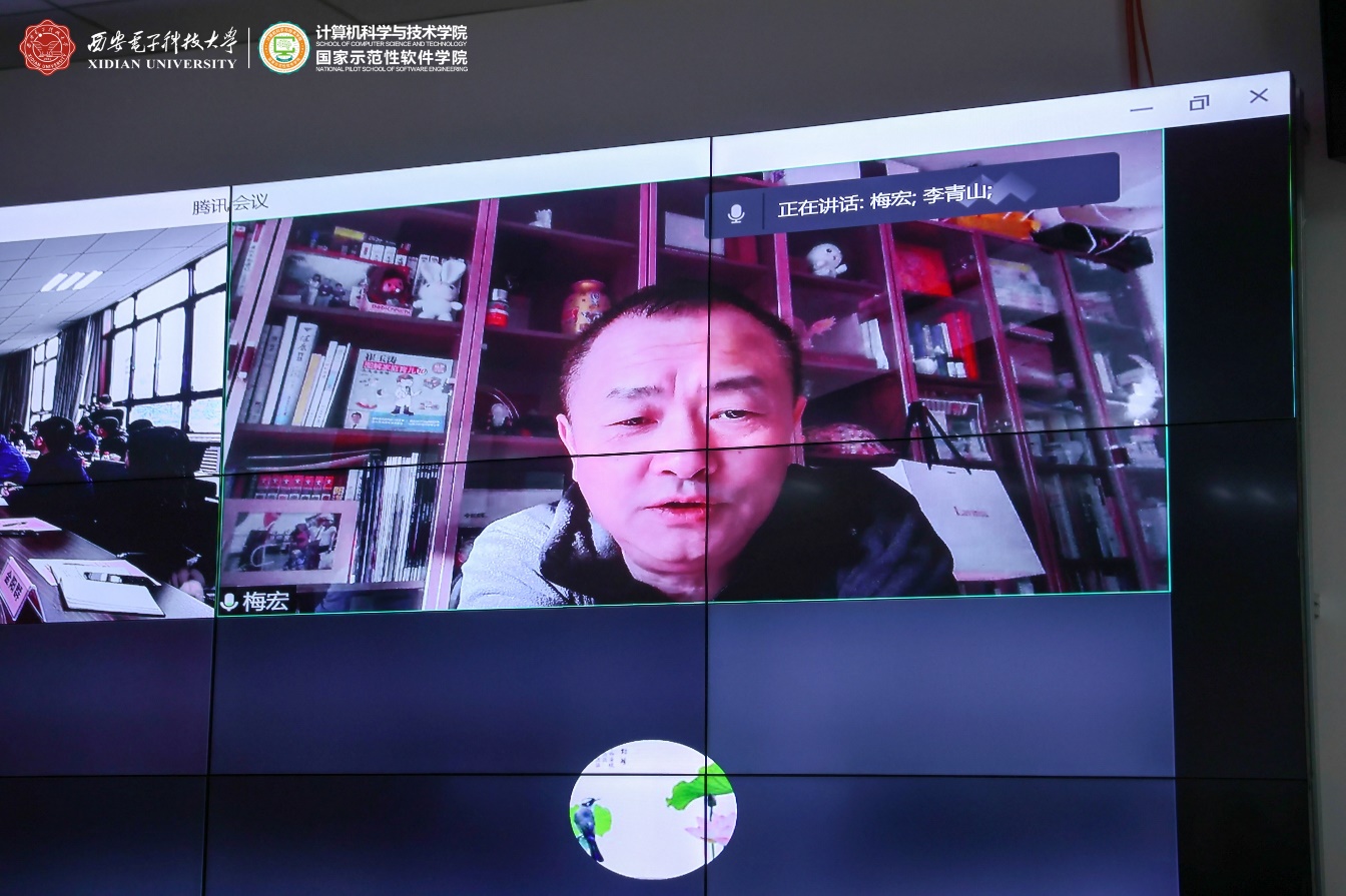 西安市智能软件工程重点实验室学术委员会成员通过线上线下共同参与了此次会议。实验室学术委员会主任由中国科学院院士、航天五院副院长、“嫦娥五号”探月工程总设计师、计算机科学与技术学院名誉院长杨孟飞院士担任,学术委员会首席顾问由中国科学院院士、军事科学院副院长、CCF理事长梅宏院士担任,实验室学术委员会副主任由CCF系统软件专委会主任、北京大学金芝教授担任。实验室学术委员会成员还包括CCF软件工程专委会主任、南京大学李宣东教授,重庆邮电大学校长高新波教授,CCF服务计算专委会主任、浙江大学计算机科学与技术学院副院长尹建伟教授,CCF软件工程专委会副主任、复旦大学计算机科学与技术学院副院长彭鑫教授,CCF软件工程专委会常委、武汉大学应时教授,湖南省复杂系统软件工程重点实验室副主任、国防科技大学毛新军教授,中科院软件所副总工程师、智能软件中心主任武延军研究员,中航工业集团软件首席科学家、集团计算技术研究所副所长韩炜研究员,西安电子科技大学研究生院副院长、计算理论与技术研究所所长田聪教授,西安电子科技大学软件工程研究所所长刘西洋教授,以及李青山教授。实验室学术委员会委员共15人,其中校外委员11人,校内委员4人。本次会议现场参会的委员有11人,在线参会的委员有杨孟飞院士、尹建伟教授2人,教育部软件工程专业教指委委员、西安电子科技大学副校长王泉教授与CCF软件工程专委会副主任、华为软件分析实验室主任王千祥教授两位因临时有事缺席。