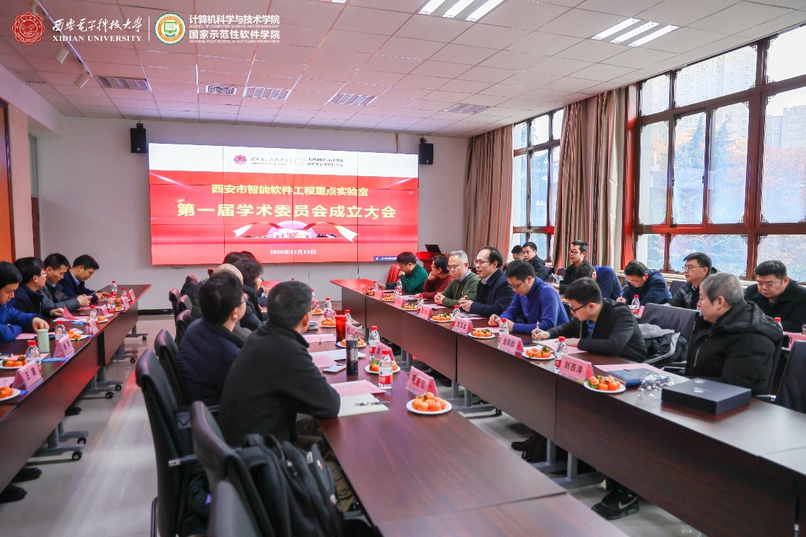 (通讯员 徐悦甡)2020年12月13日,西安市智能软件工程重点实验室学术委员会成立暨第一次学术委员会会议在西安电子科技大学北校区主楼II区319会议室成功召开,实验室学术委员会成立仪式由实验室主任、西安电子科技大学计算机科学与技术学院党委书记、软件工程学科负责人、智能软件与系统新技术研究所所长李青山教授主持,第一次学术委员会会议由学术委员会副主任、中国计算机学会(CCF)系统软件专委会主任、北京大学金芝教授主持,参会人员包括学校和学院领导、实验室学术委员会成员以及实验室骨干教师代表等共计40余人。