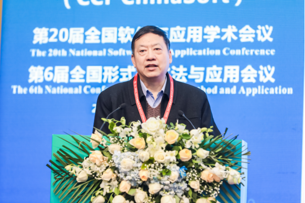 本届大会轮值专委会CCF形式化方法专委会荣誉主任、大会共同荣誉主席、中国科学院院士林惠民致辞。林惠民院士再次欢迎各位代表的参会,并对西安电子科技大学承办团队为大会筹办与组织付出的努力表示特别感谢,也对协办单位、支持单位与赞助单位表示感谢。同时,林惠民院士通过回顾国内软件技术发展的历程,阐释了当前软件相关领域面临的挑战,并强调了自主创新与基础研究的重要性。