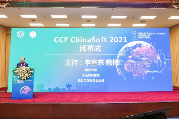 最后,李宣东教授对本届大会进行了总结并指出,在今年疫情的影响下,整个组委会包括专委会、承办方西安电子科技大学、支持单位西安高新区软件新城、各协办单位、各赞助单位克服困难,通力合作,共同为参会代表呈现了一次线上线下相结合的精彩大会,论坛数量、竞赛规模等均有增长,24日、25日线上平台观看人数超过17万人,今天线上观看人数超过7万人,为软件相关领域师生同行留下了美好的回忆,感谢大会的承办团队,以及支持单位、协办单位与赞助单位的辛苦付出,感谢广大线上线下的参会代表。至此,2021 CCF中国软件大会圆满闭幕。