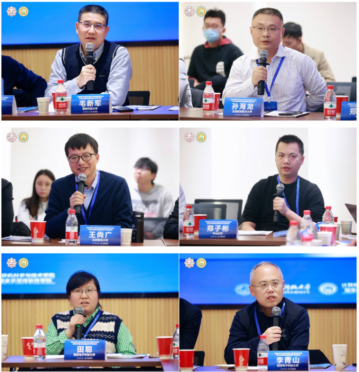南京大学马晓星教授、复旦大学彭鑫教授、北京大学刘譞哲教授、中科院软件所吴敬征研究员、国防科技大学毛新军教授、北京航空航天大学孙海龙教授、北京邮电大学王尚广教授、中山大学郑子彬教授、西安电子科技大学田聪教授、西安电子科技大学李青山教授,分别代表南京大学计算机软件研究所团队、复旦大学智能化软件开发研究团队、北京大学智能系统软件研究团队、中科院软件所智能软件研究中心团队、国防科技大学智能软件的软件工程研究团队、北京航空航天大学安全关键软件团队、北京邮电大学服务计算与星地融合团队、中山大学区块链与可信软件研究团队、西安电子科技大学软件可信认证关键技术团队以及西安电子科技大学智能软件工程团队,围绕科研方向凝练、师资队伍建设、青年教师引培、科研育人模式、国内校际合作、国际团队互动等主题进行了成效经验分析和共同发展研讨。邓成教授做研讨总结,指出本次研讨会围绕软件工程学科建设与学术进展的一系列问题进行了充分研讨,成效显著,可以总结为三个“度”,即战略有高度、学术有深度、应用有广度,西电再次真诚感谢各位专家与学者对于学校发展和学科进步做出的贡献。本次研讨会圆满结束。
